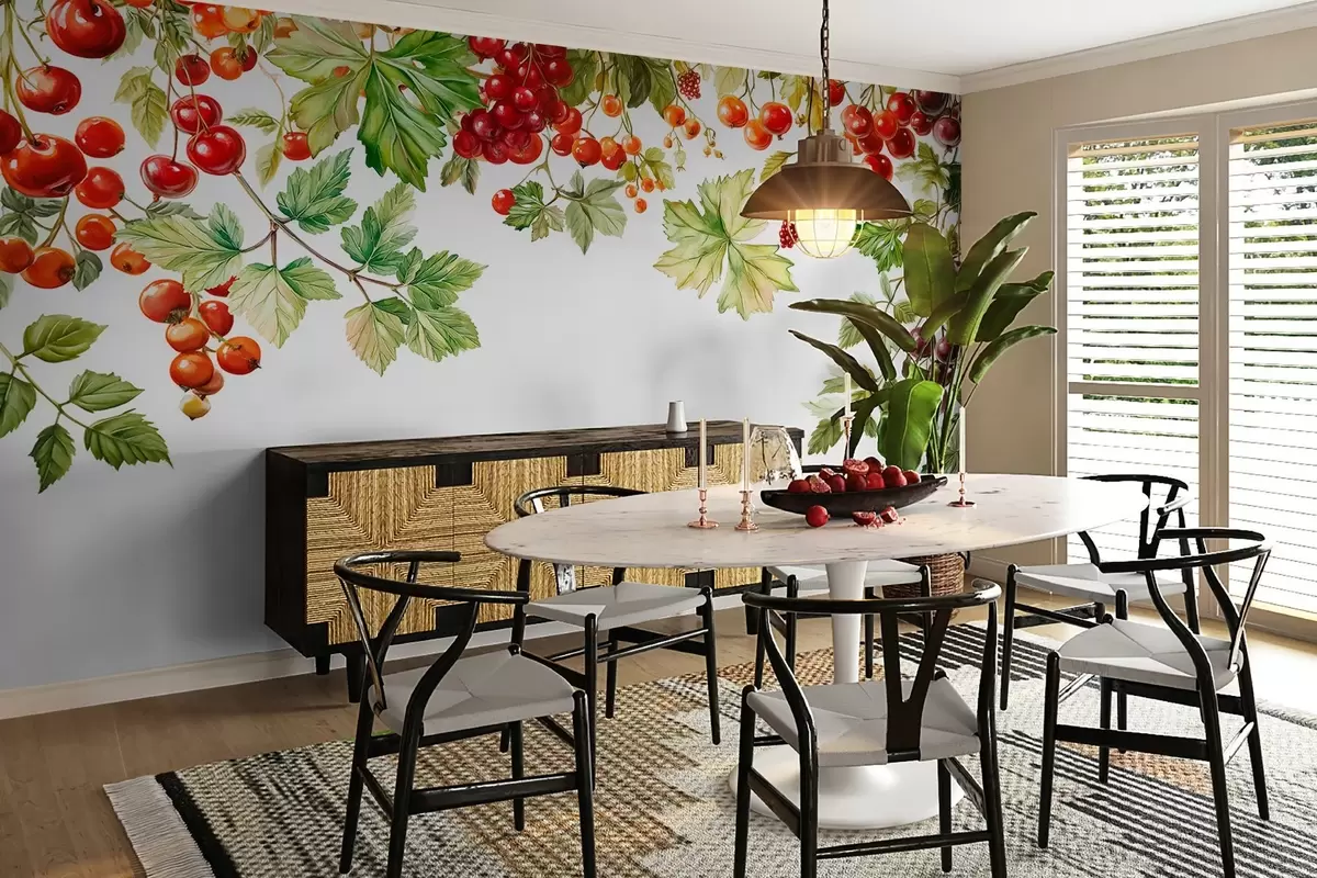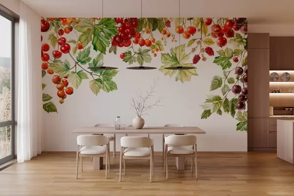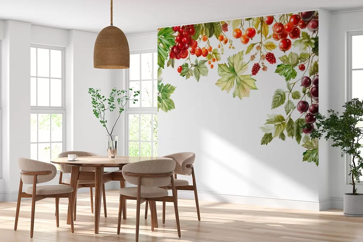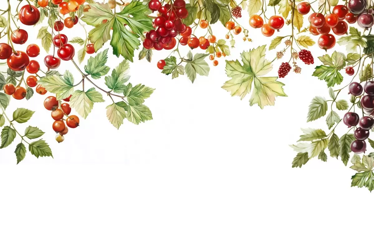 Murais de parede cachos de groselha pendurados no topo em estilo aquarela em um fundo branco Nr. w04073