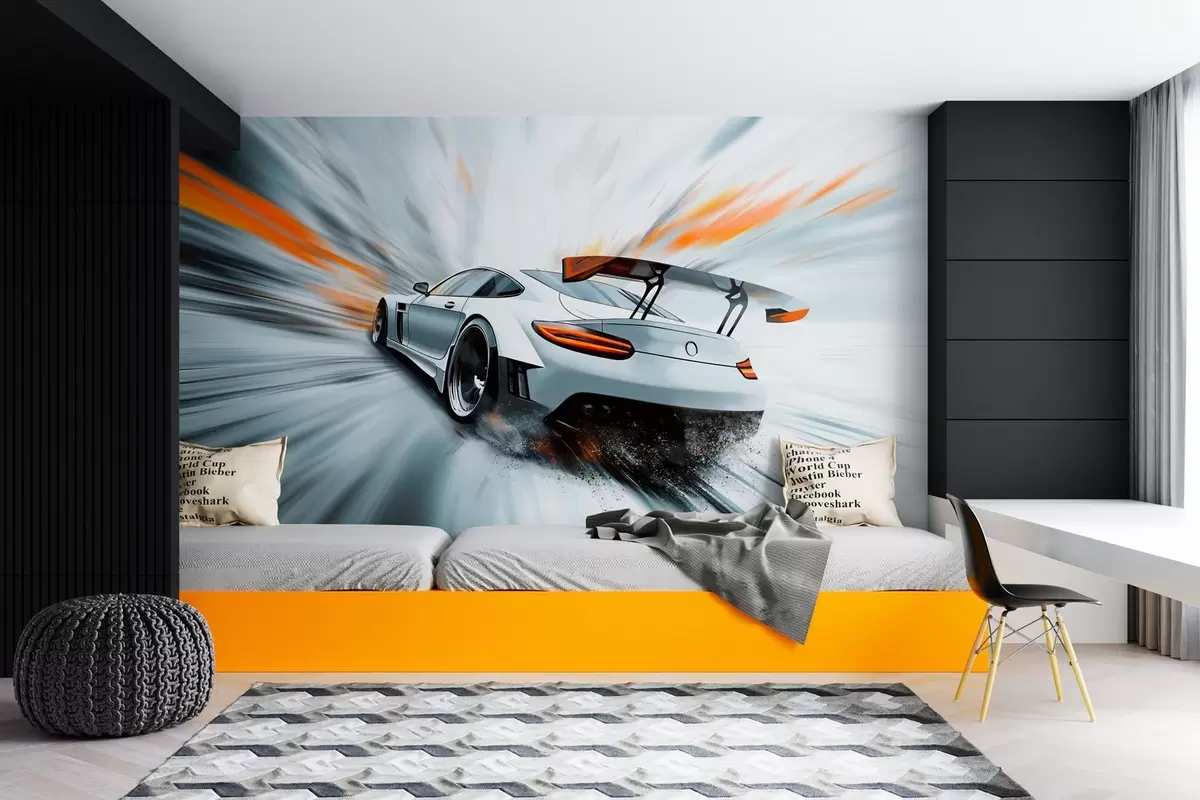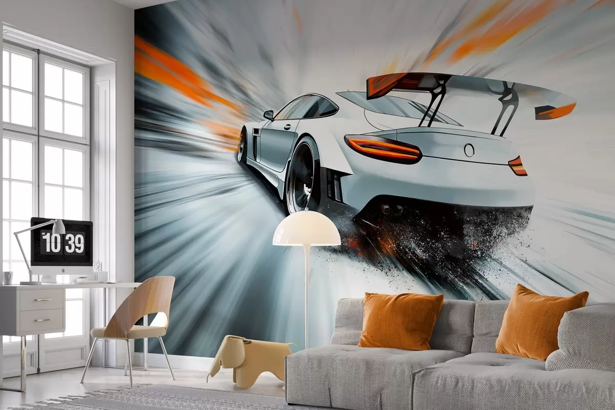 Murais de parede um carro esportivo dinâmico que corre pelo espaço Nr. w04074