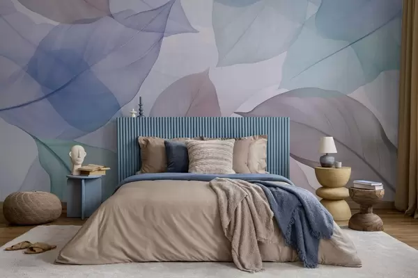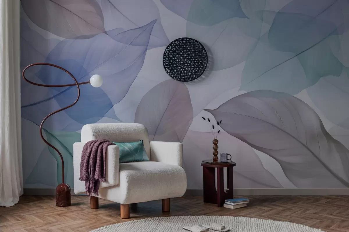 Murais de parede Folhas translúcidas com veias em tons de azul e marrom Nr. w04075