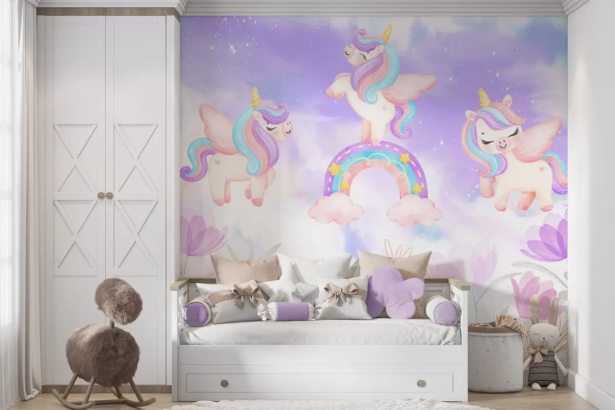 Murais de parede Unicórnios em um arco-íris Nr. w04084