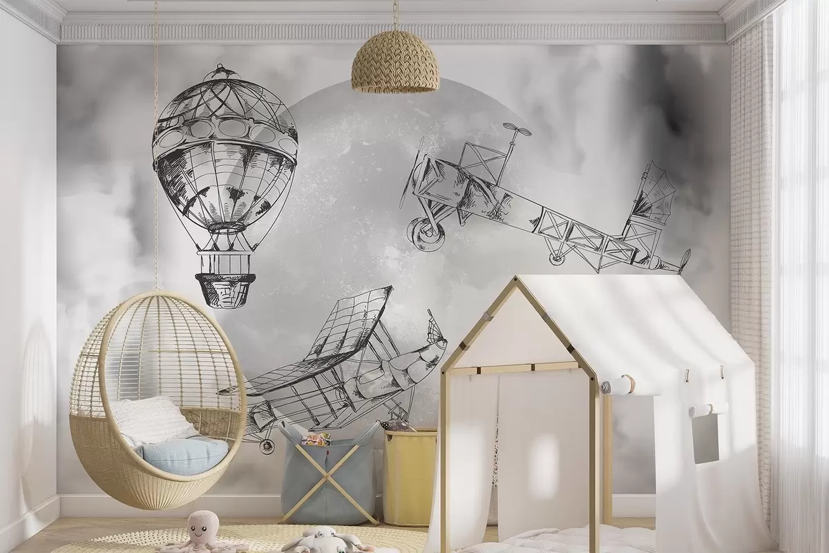 Murais de parede Aviões retrô contra o fundo da lua e das nuvens Nr. w04085