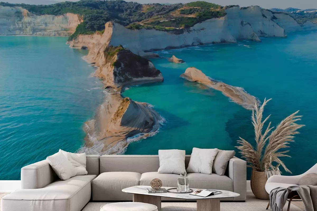 Murais de parede Ilha da Grécia, textura em estilo óleo, costa marítima, água azul-marinho, realismo Nr. w04094