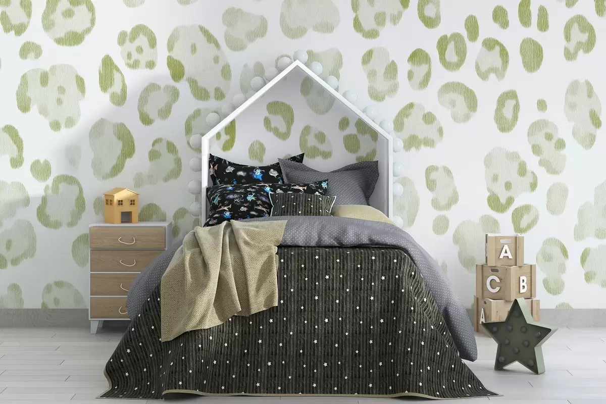 Murais de parede Estampa de leopardo, textura de lã, cor verde Nr. w04112v3