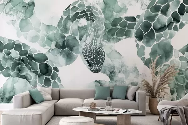 Murais de parede Silhueta de cobra, estilo aquarela, cores verdes Nr. w04113v2