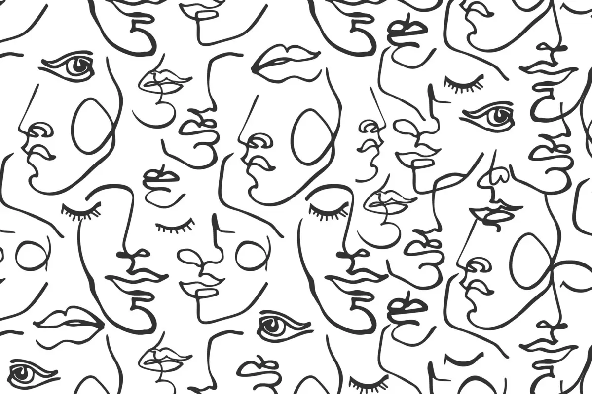 Murais de parede Rostos abstratos na cor preta Nr. w04121