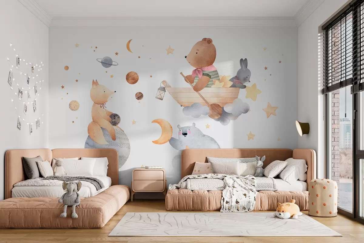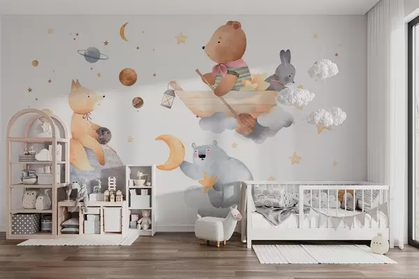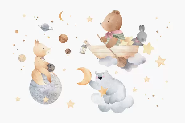 Murais de parede Animais de contos de fadas entre nuvens e estrelas Nr. w04123