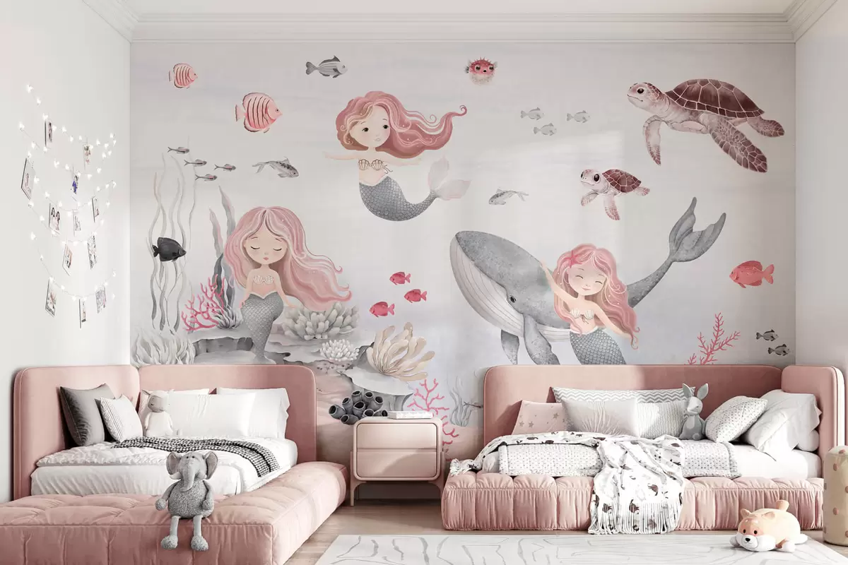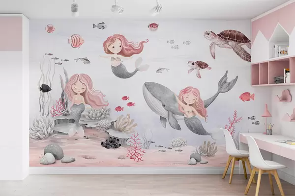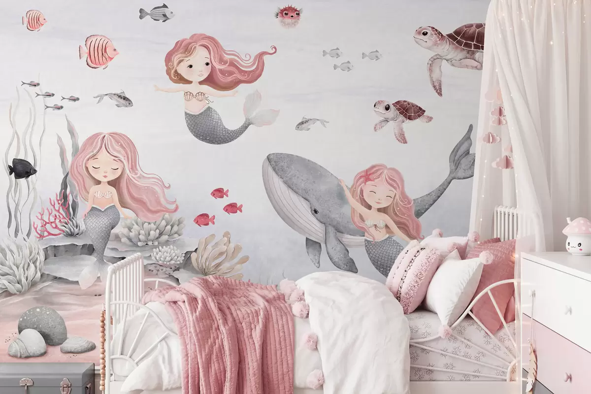 Murais de parede Mundo subaquático com sereias e peixes Nr. w04166v1