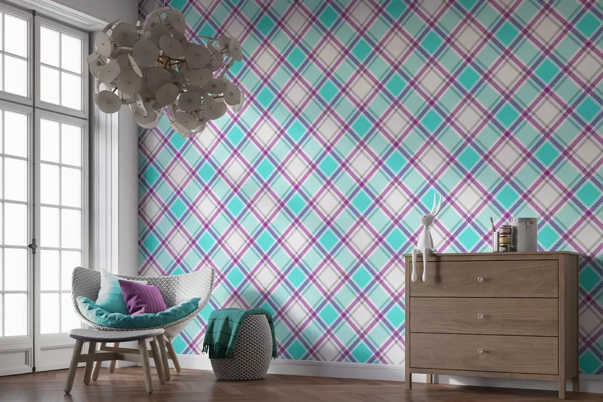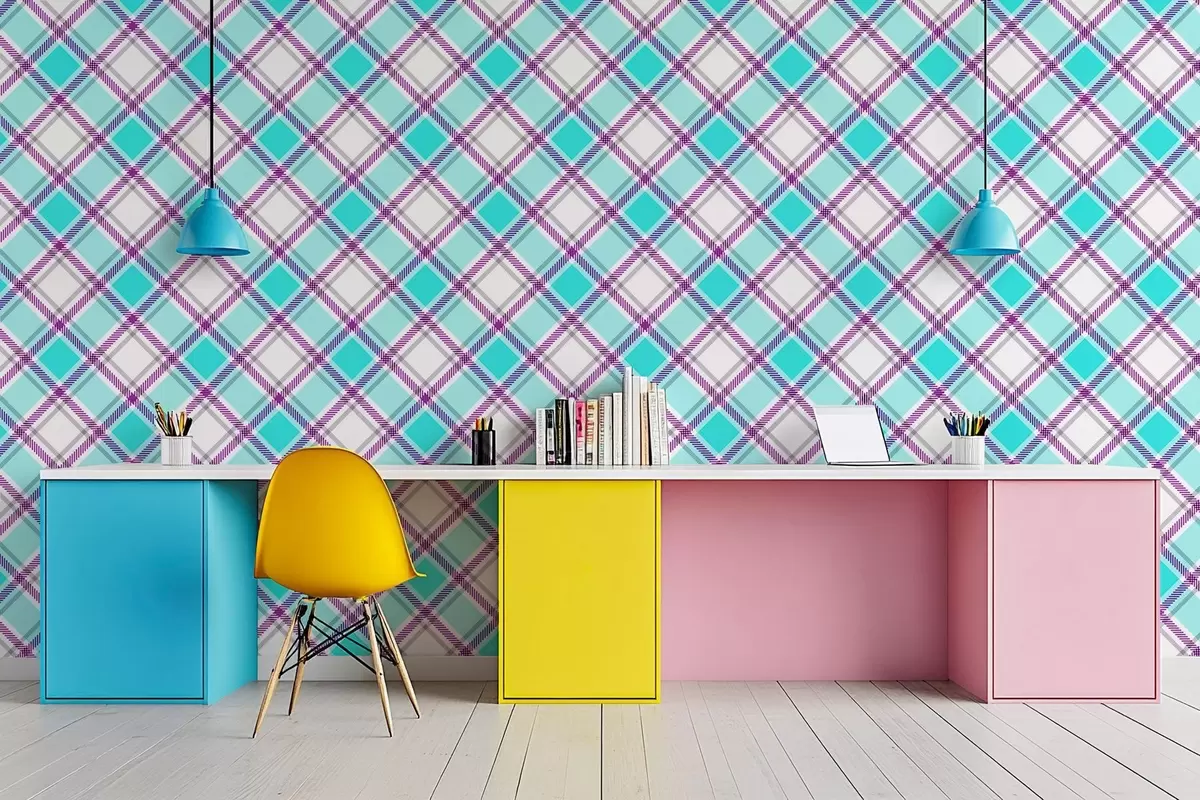 Murais de parede padrão xadrez em tons de azul Nr. w04167