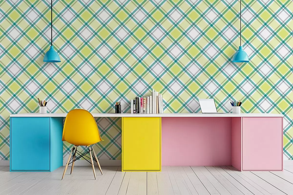 Murais de parede padrão xadrez em tons de amarelo Nr. w04167v1