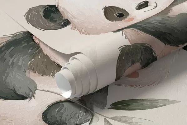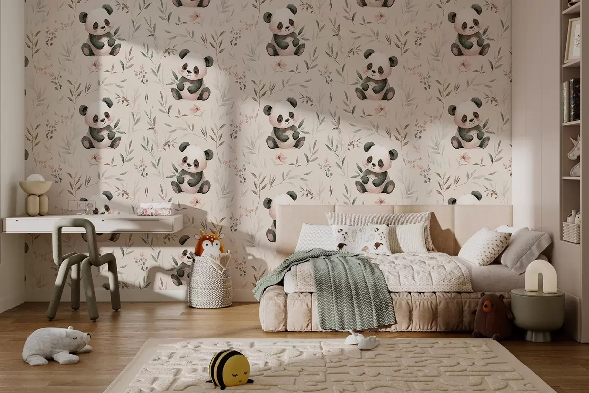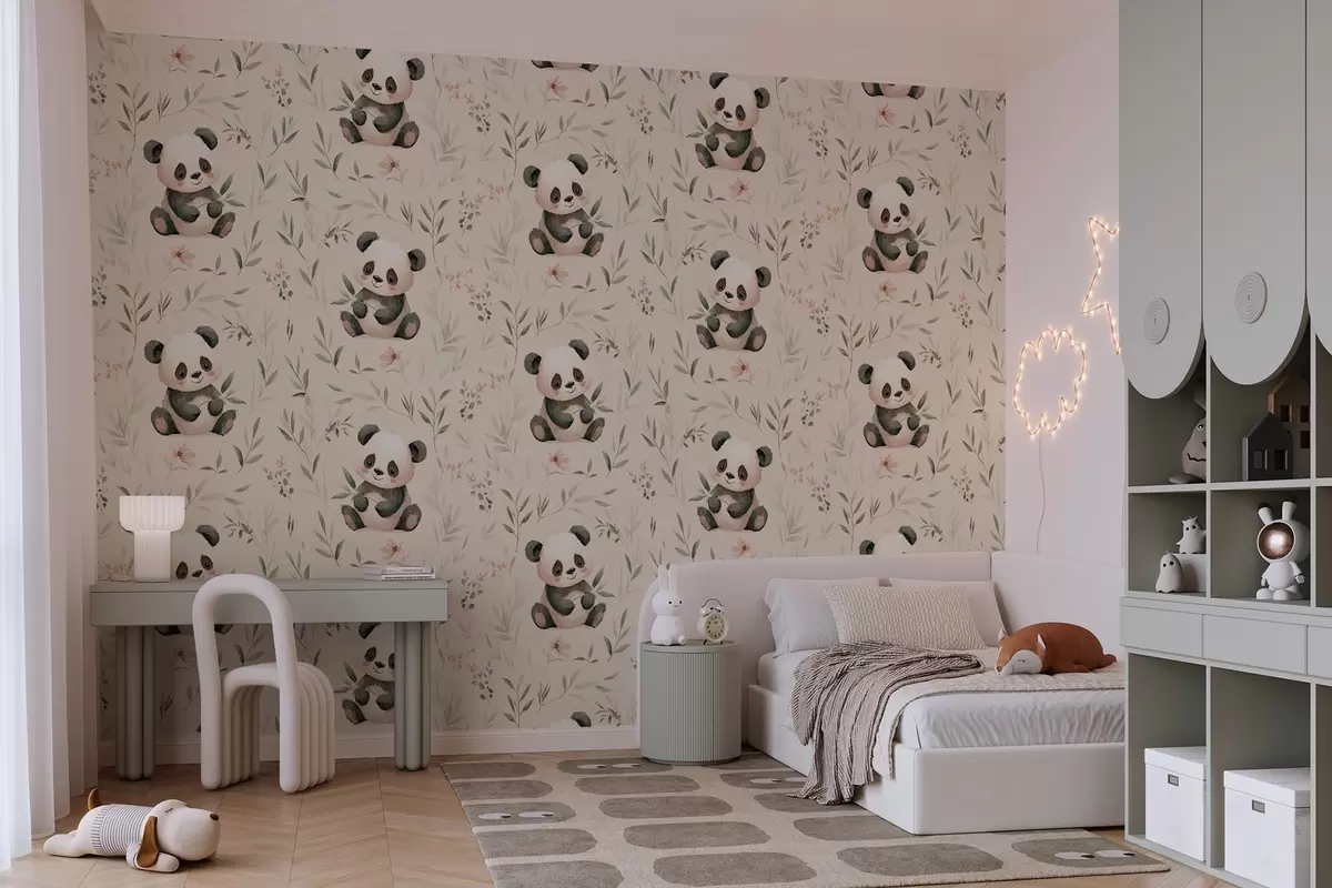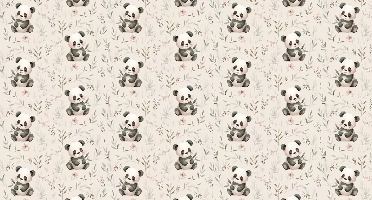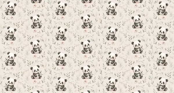 Murais de parede pandas fofos em forma de bebê entre as plantas Nr. w04170