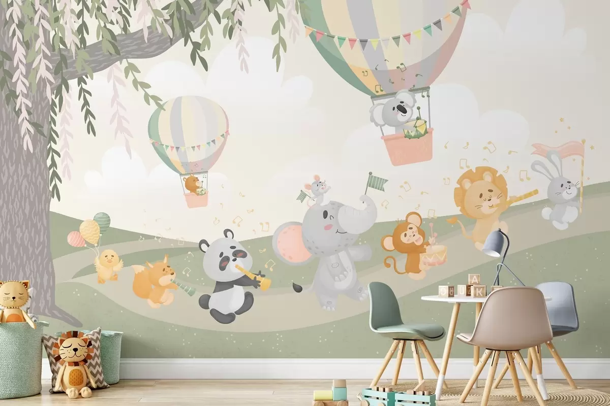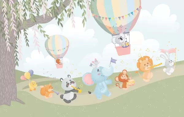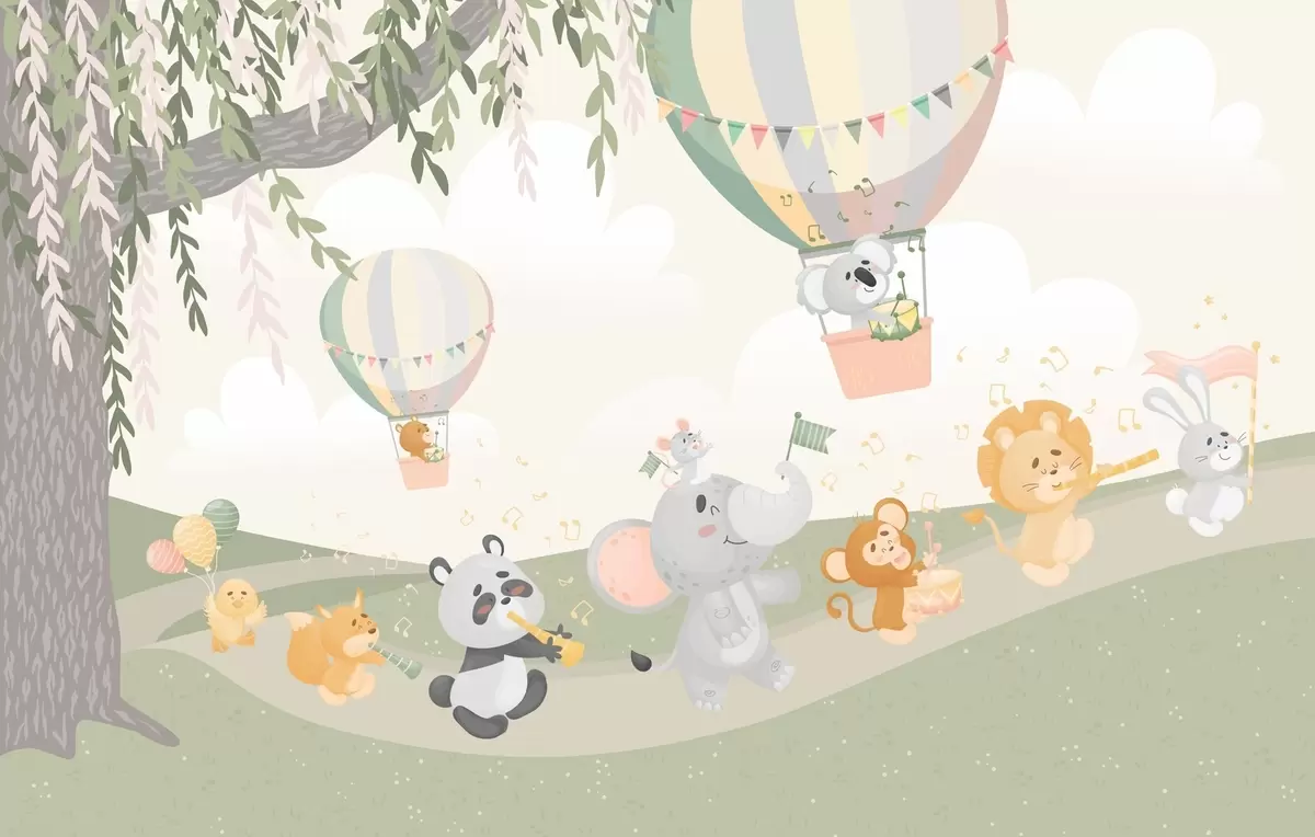 Murais de parede Paisagem com animais tocando instrumentos musicais Nr. w04200v1