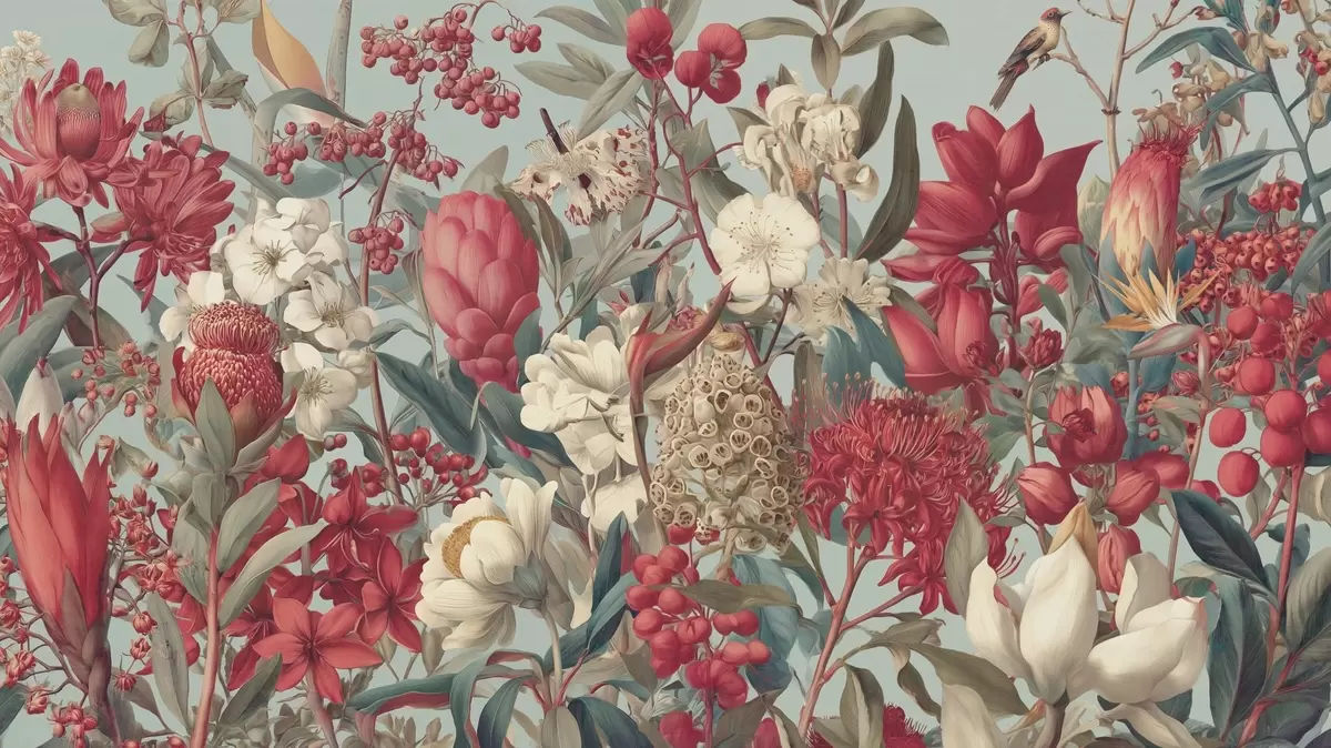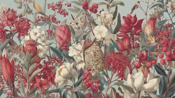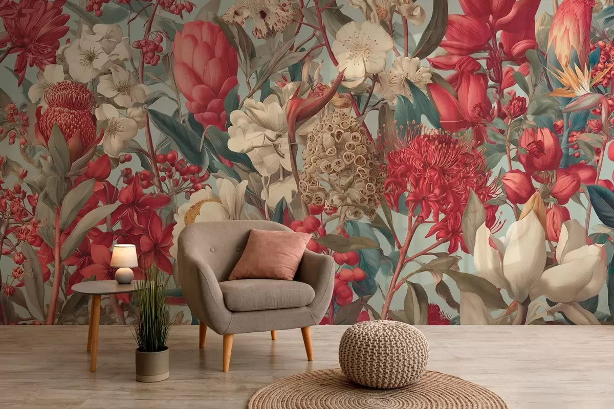 Murais de parede flores tropicais texturizadas em um fundo azul Nr. w04209