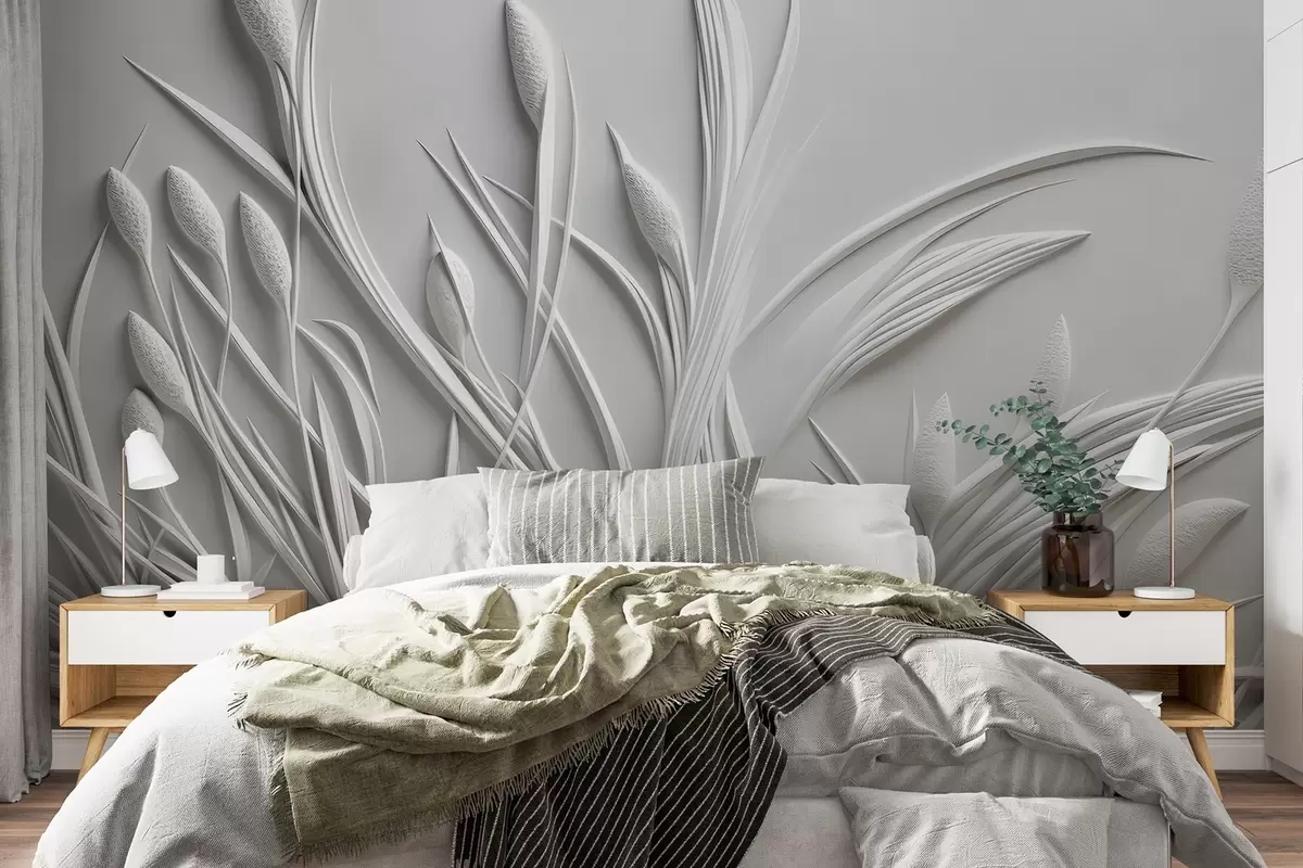 Murais de parede Baixo-relevo com folhas delicadas e pampas Nr. w04247