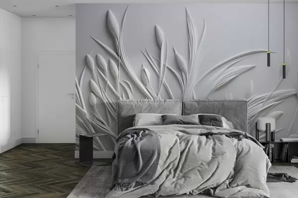 murais de parede Baixo-relevo com folhas delicadas e pampas w04247