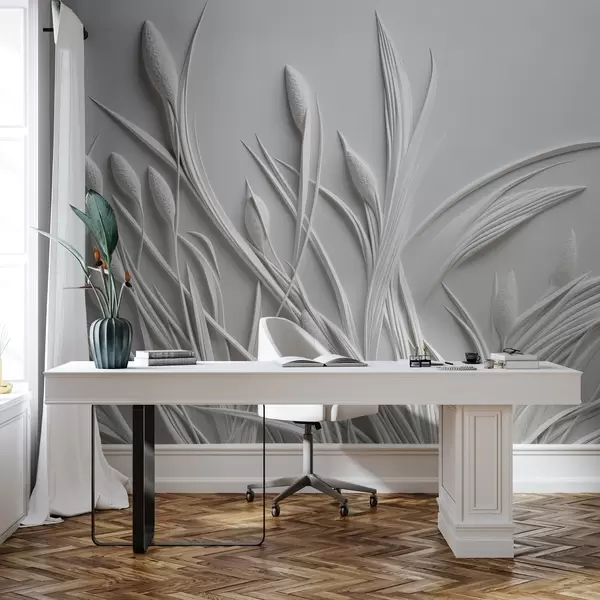 murais de parede Baixo-relevo com folhas delicadas e pampas w04247