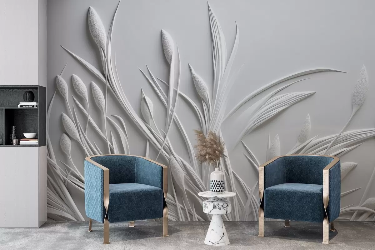 Murais de parede Baixo-relevo com folhas delicadas e pampas Nr. w04247