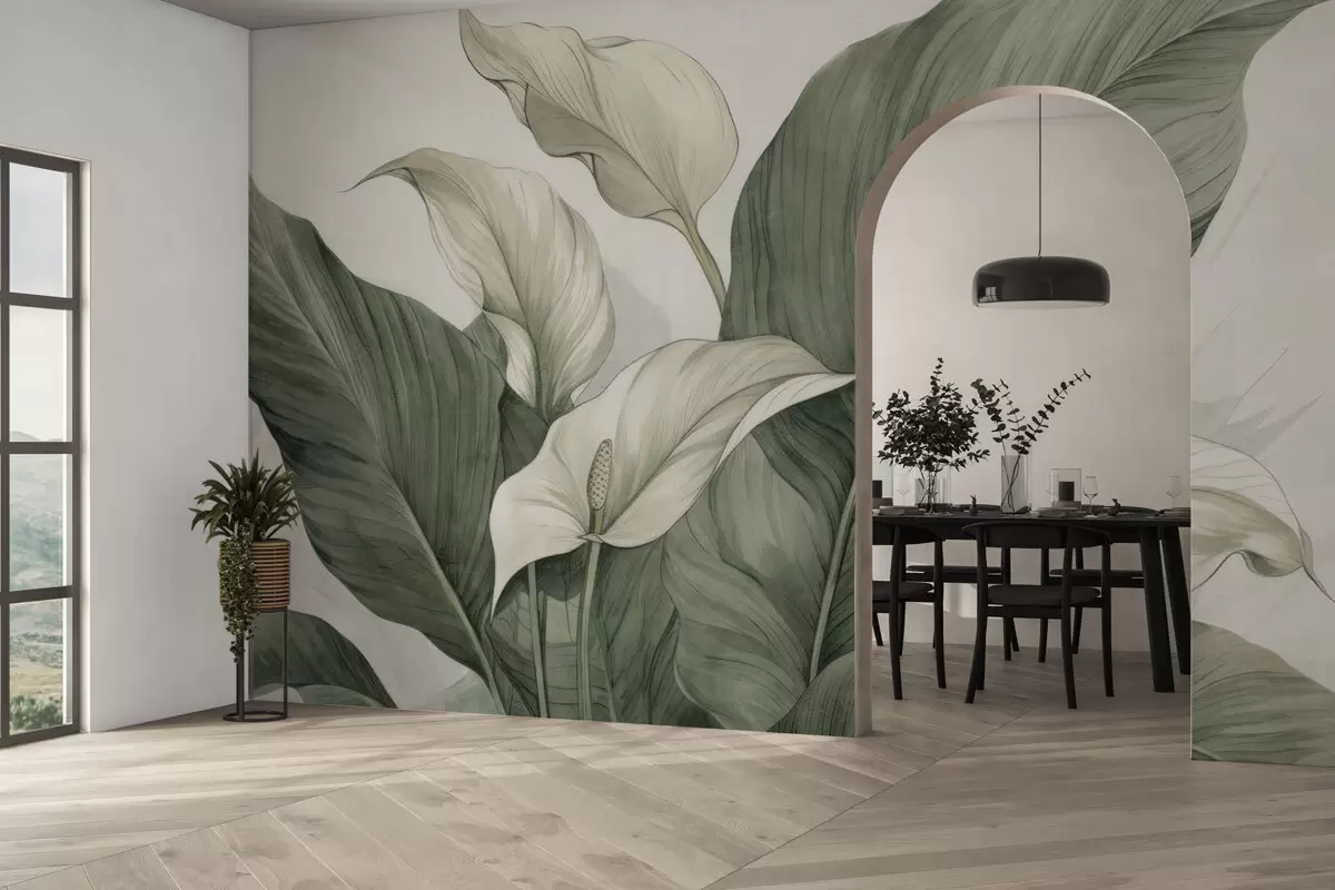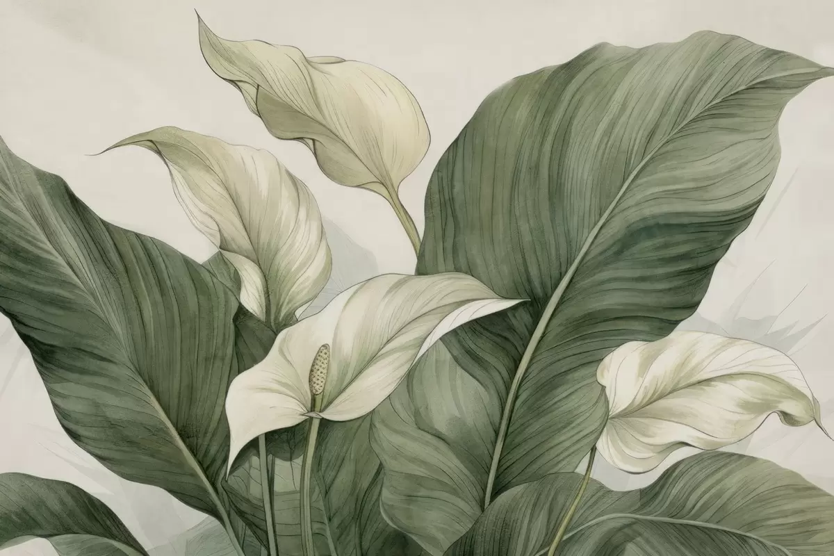 Murais de parede Close-up de spathiphyllum florescendo com folhas grandes Nr. w04263