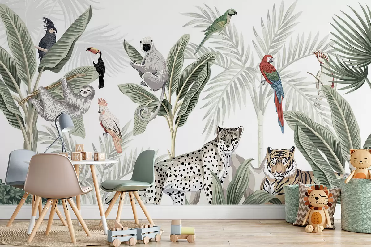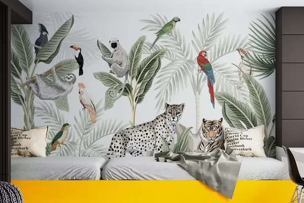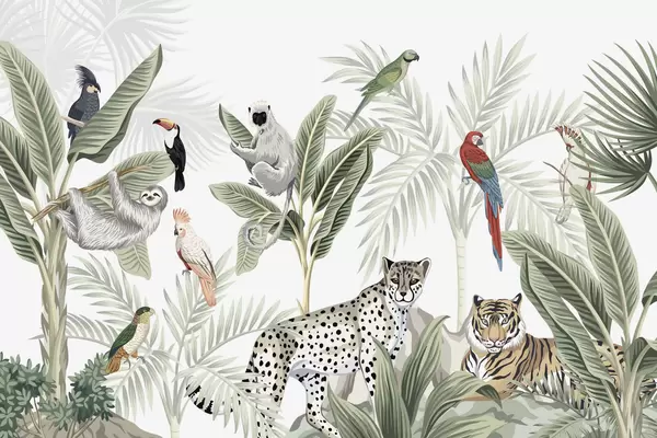 Murais de parede Animais e pássaros na selva Nr. w04268