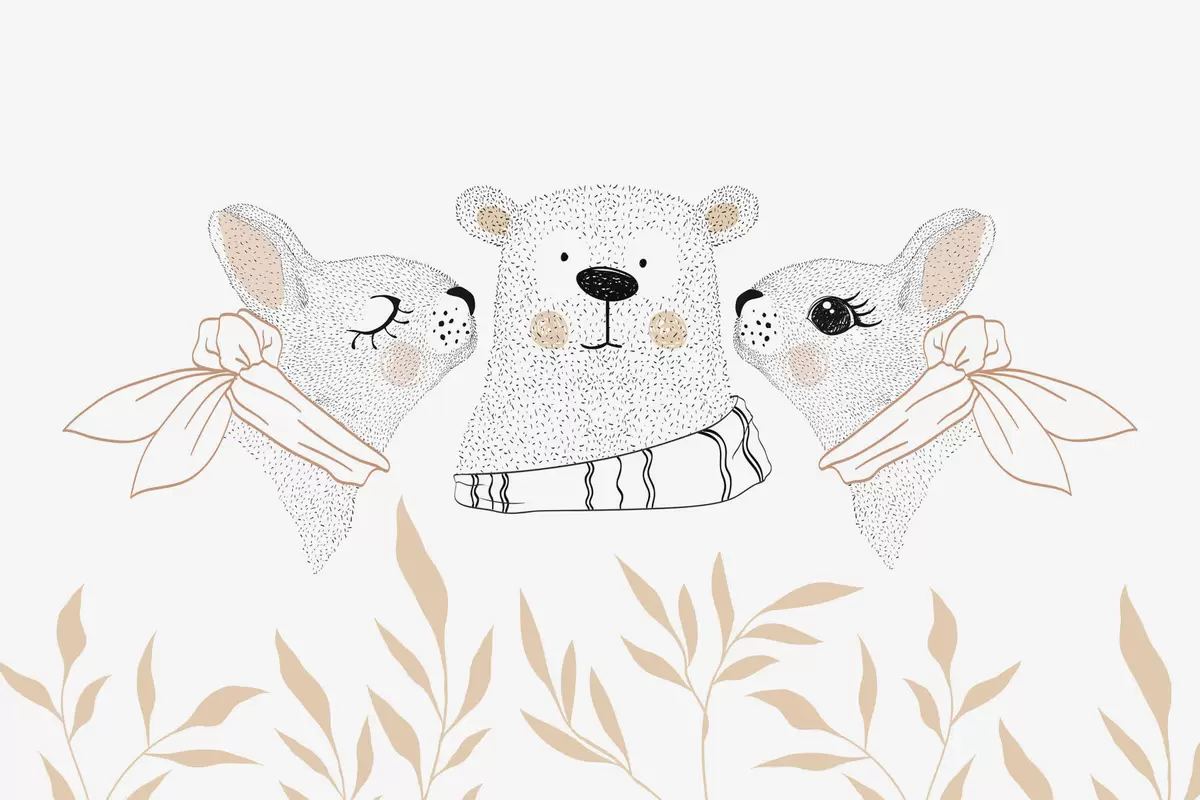 Murais de parede Animais engraçados, lebres e um filhote de urso Nr. w04269