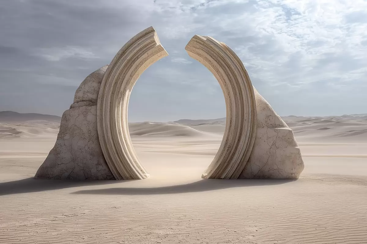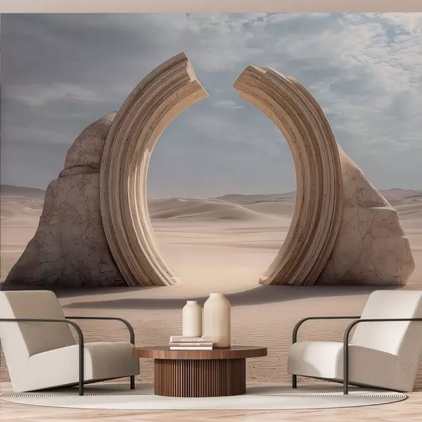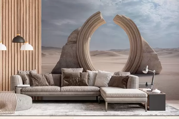 Murais de parede paisagem surrealista do deserto com um grande arco arquitetônico Nr. w04284