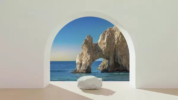 Murais de parede vista do mar e das rochas através do arco Nr. w04286