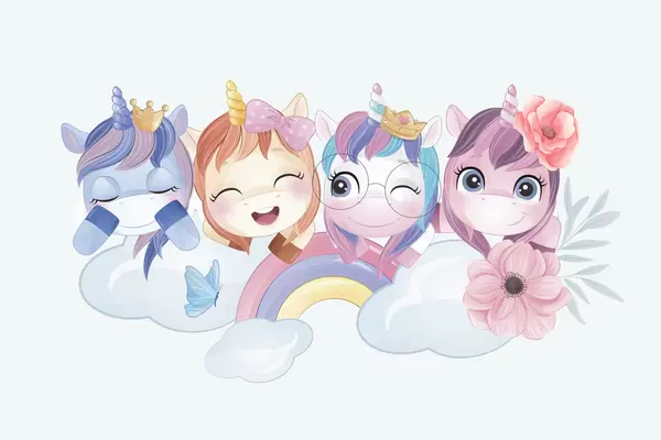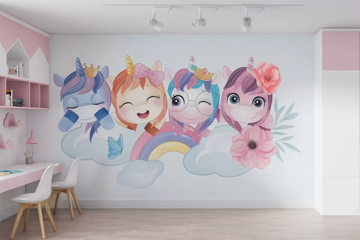 Murais de parede Unicórnios fofos entre nuvens e arco-íris Nr. w04298