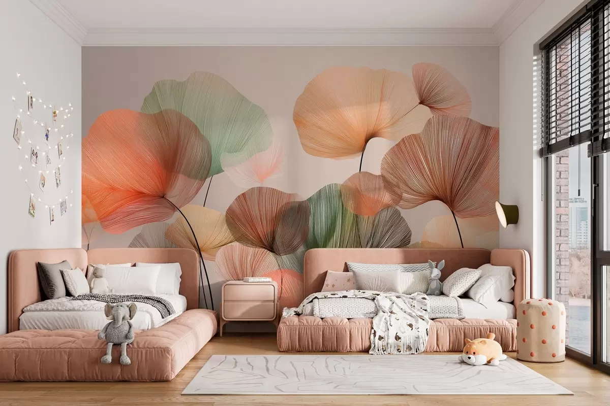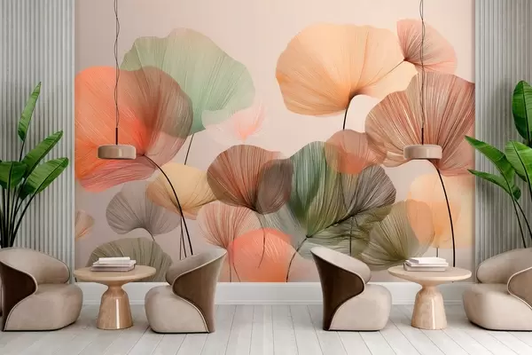 Murais de parede folhas de ginkgo multicoloridas com veias Nr. w04305