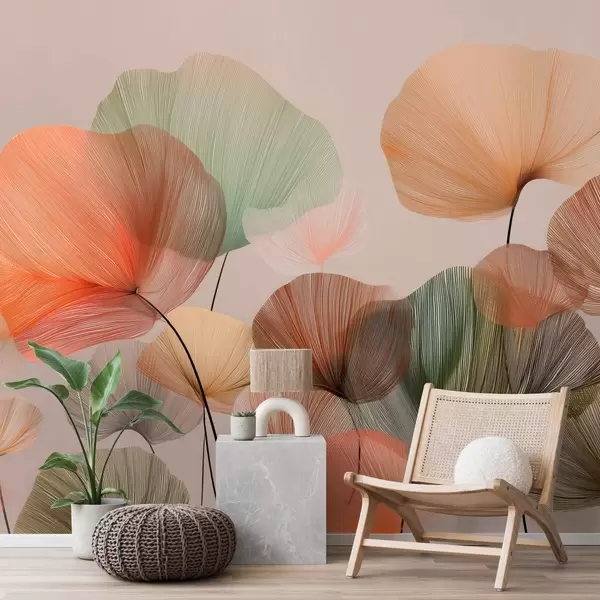 Murais de parede folhas de ginkgo multicoloridas com veias Nr. w04305