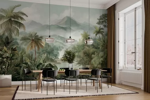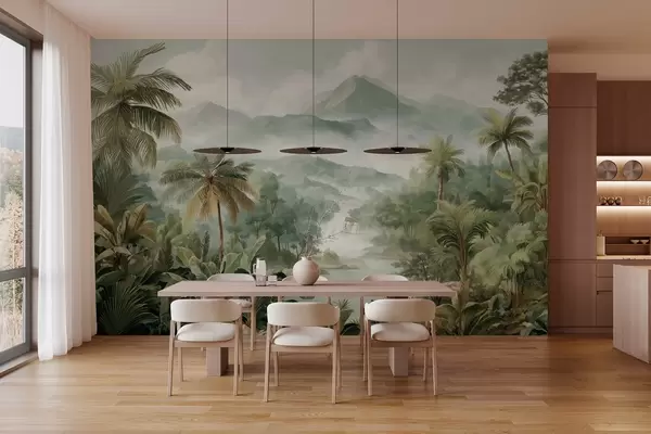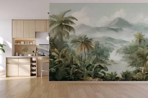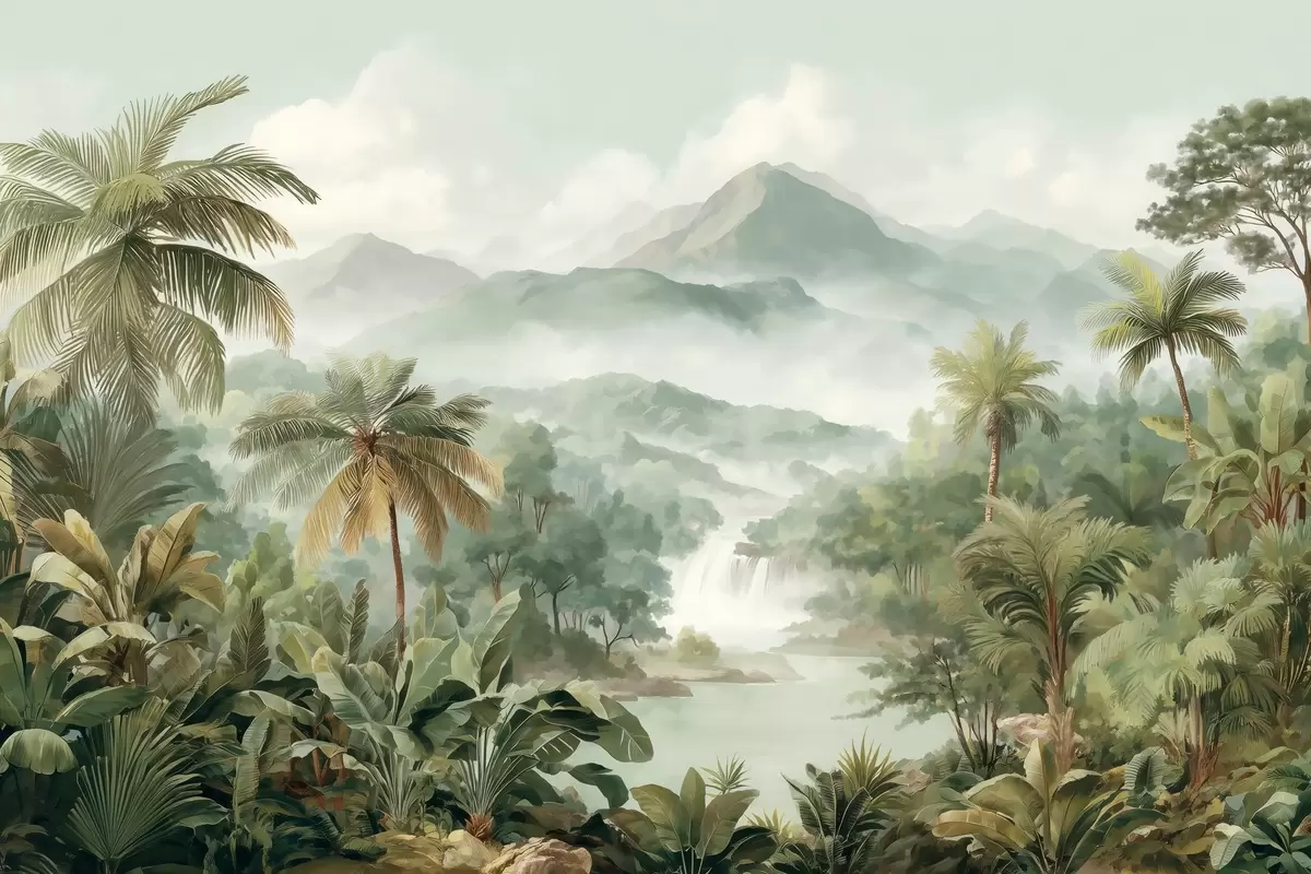Murais de parede selva tropical com cachoeira Nr. w04306
