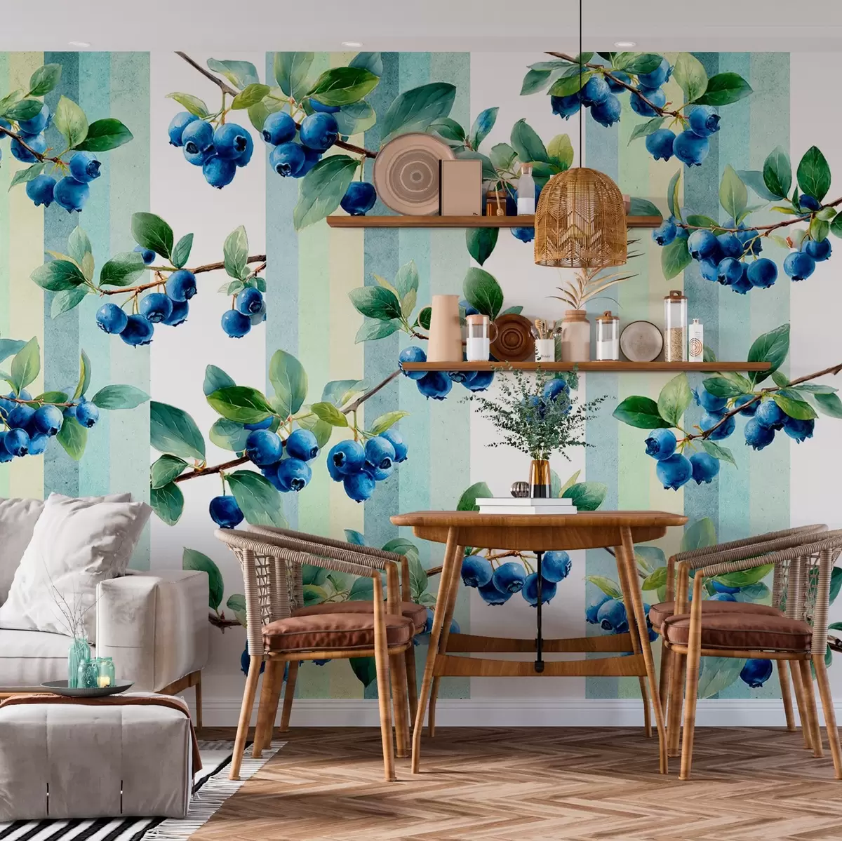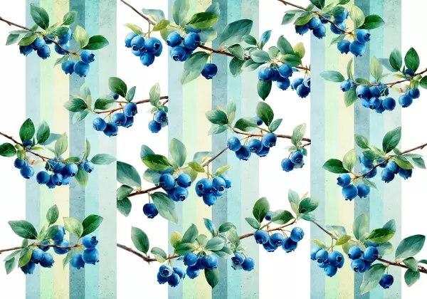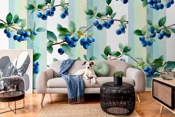 Murais de parede cachos de mirtilo em um fundo listrado Nr. w04307