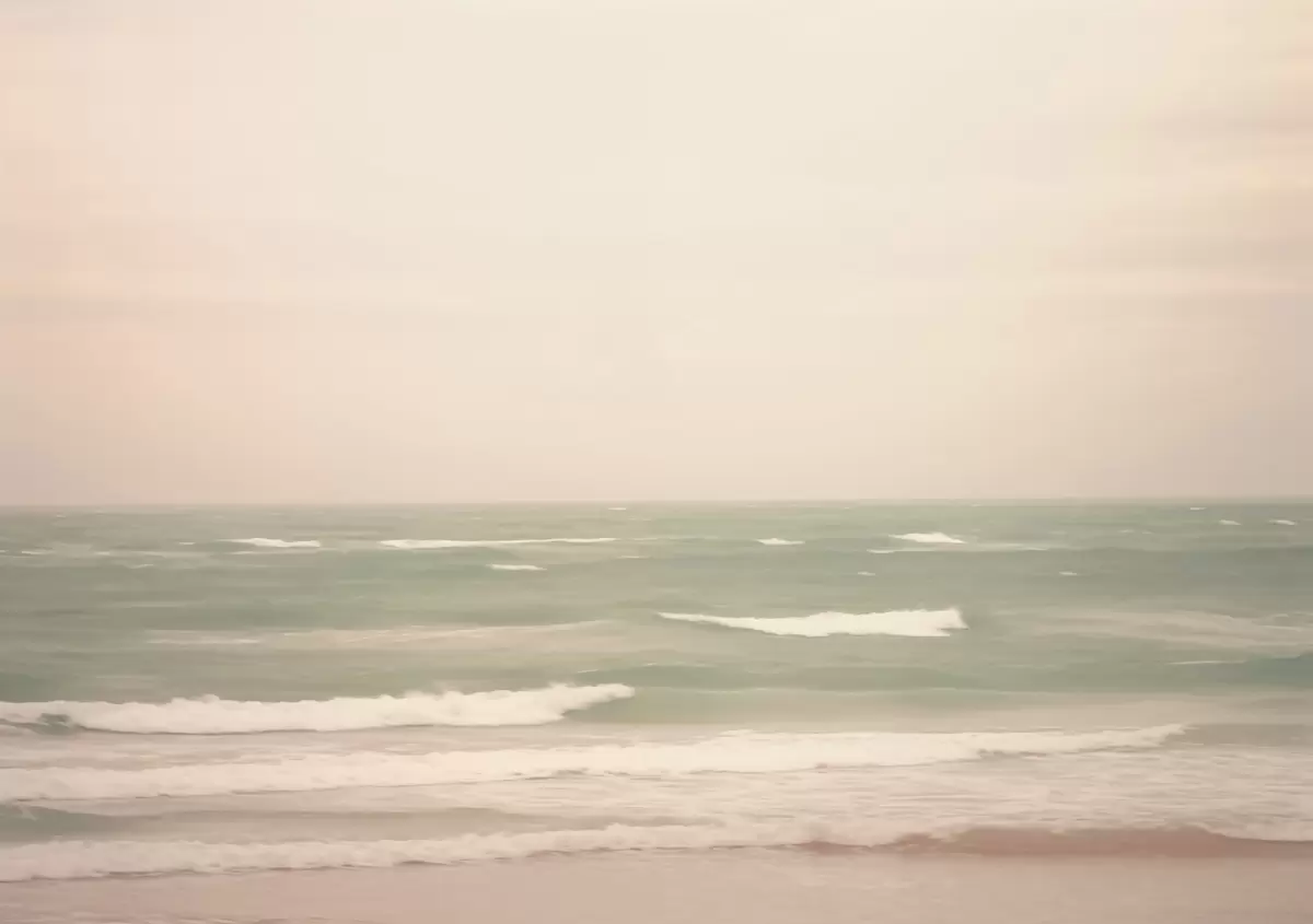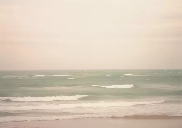 Murais de parede Paisagem marinha verde-rosa suave com ondas suaves Nr. w04348