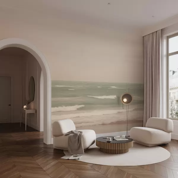Murais de parede Paisagem marinha verde-rosa suave com ondas suaves Nr. w04348