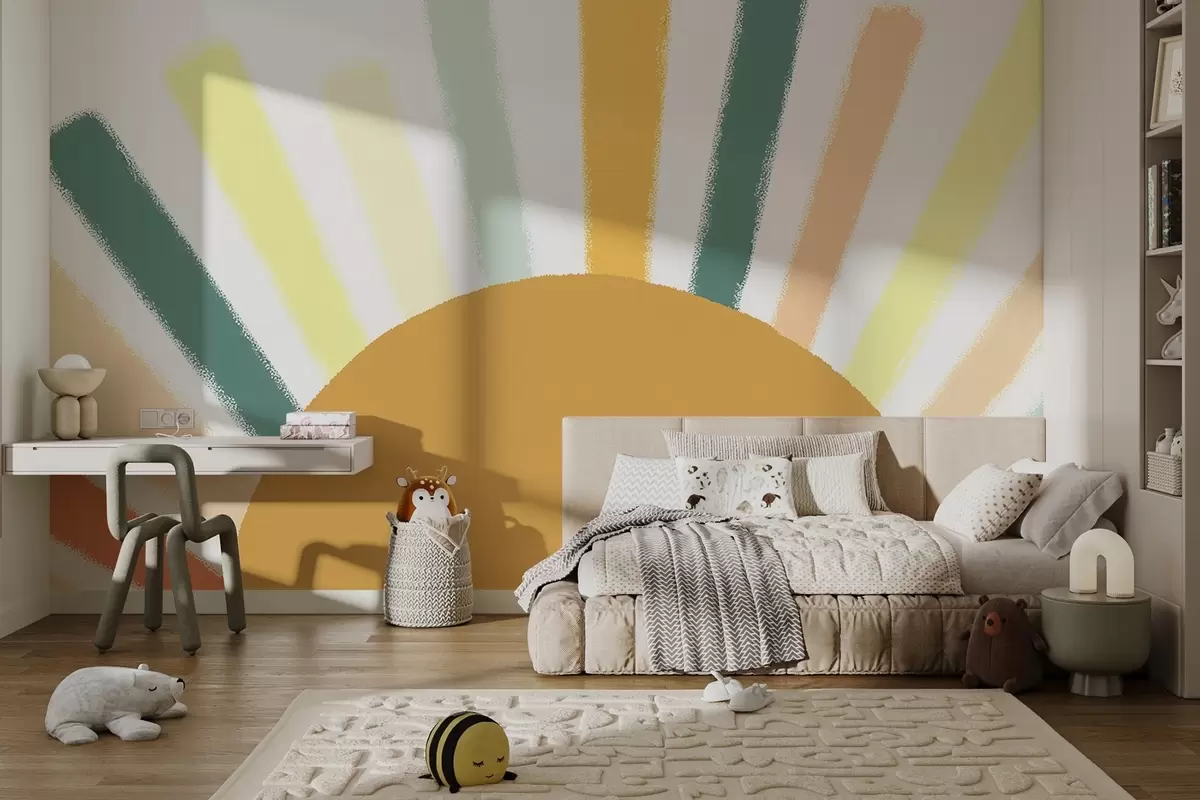 Murais de parede Sol abstrato com raios coloridos Nr. w04352