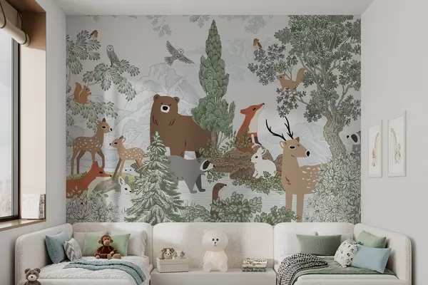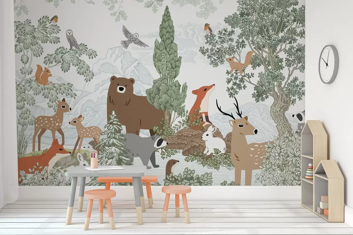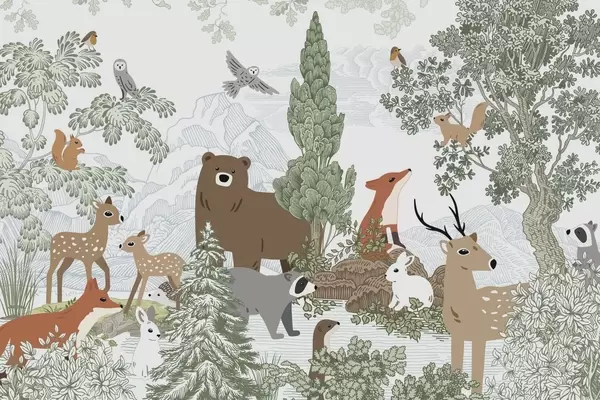 Murais de parede Animais e pássaros na floresta Nr. w04383