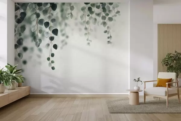 Murais de parede Eucalipto caindo sobre um fundo claro Nr. w04393