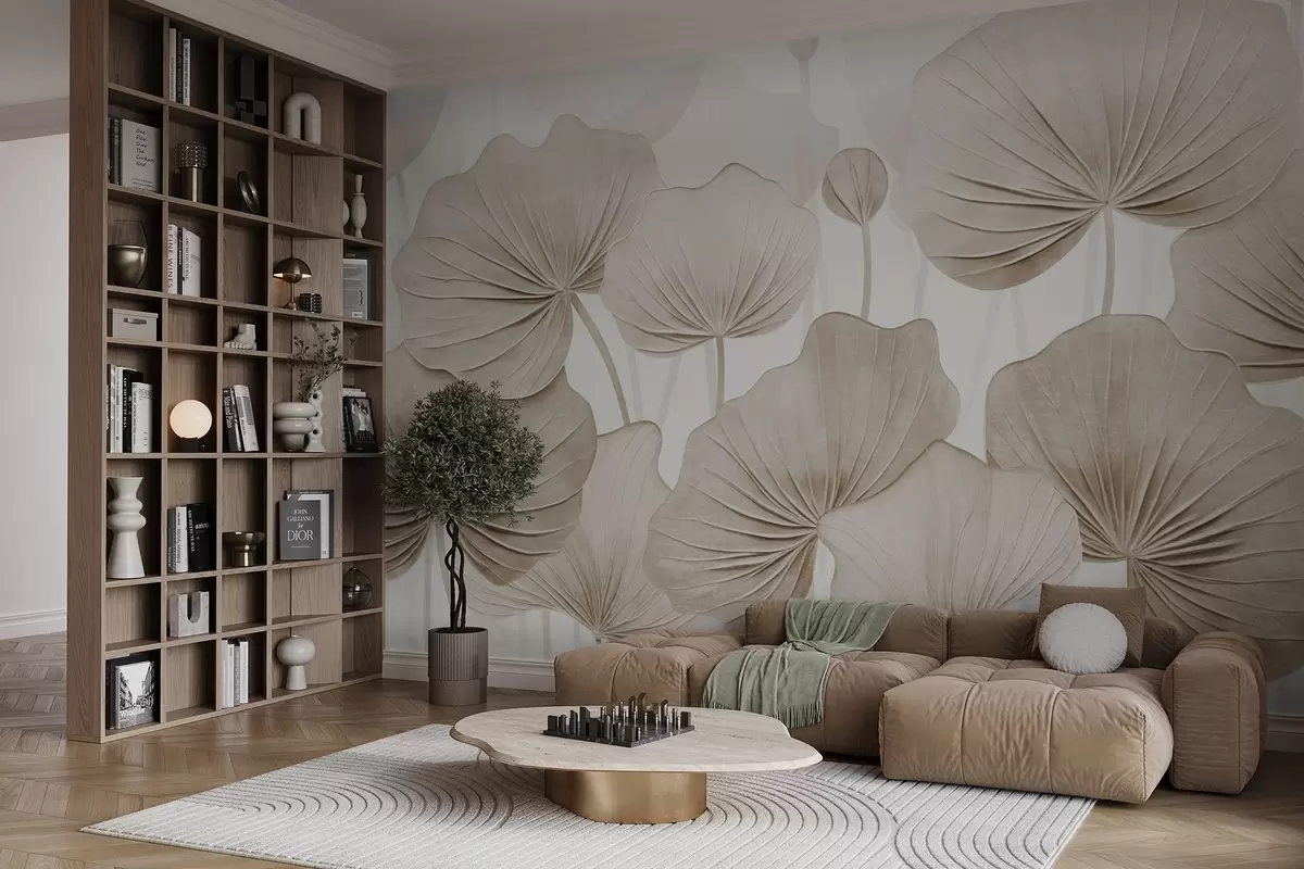Murais de parede Folhas de lótus com imitação de textura desgastada Nr. w04412v1