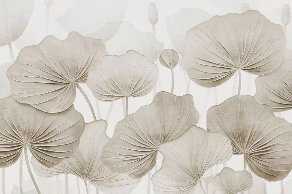 Murais de parede Folhas de lótus com imitação de textura desgastada Nr. w04412v1