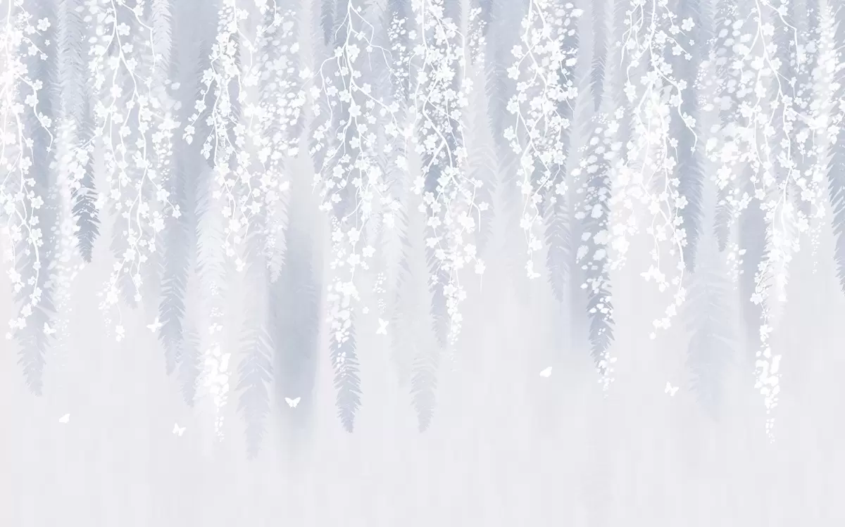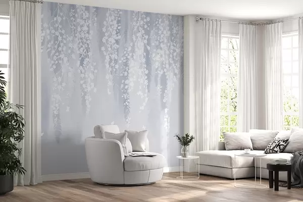 Murais de parede Versão azul de galhos com flores brancas Nr. w04417v2