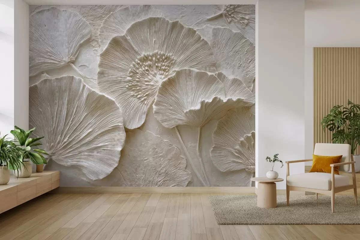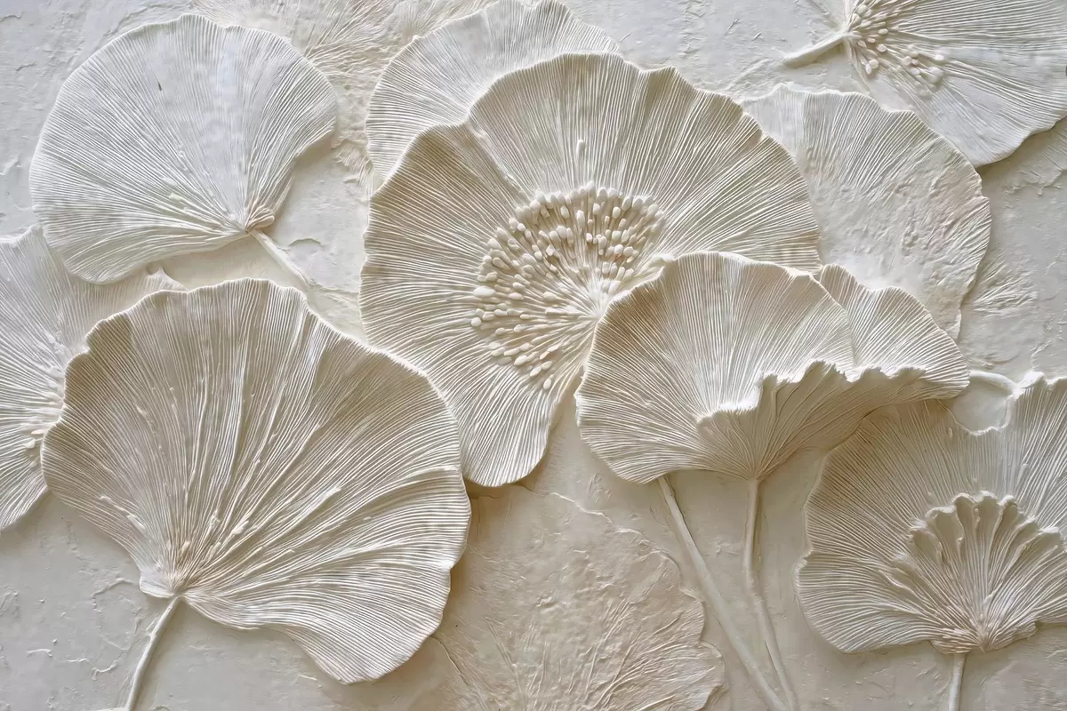 Murais de parede Folhas volumosas de ginkgo em um estilo leve em relevo Nr. w04444