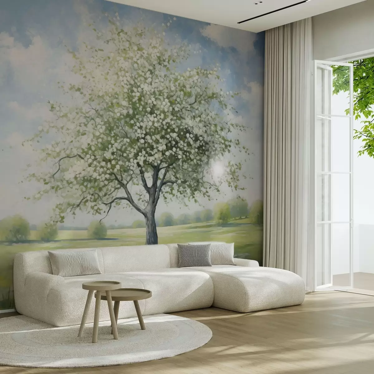 Murais de parede Uma árvore solitária em um campo com flores brancas Nr. w04445