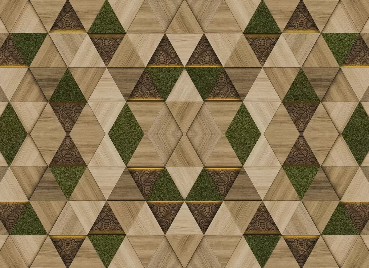 Murais de parede Ornamento geométrico de madeira com musgo Nr. w04459