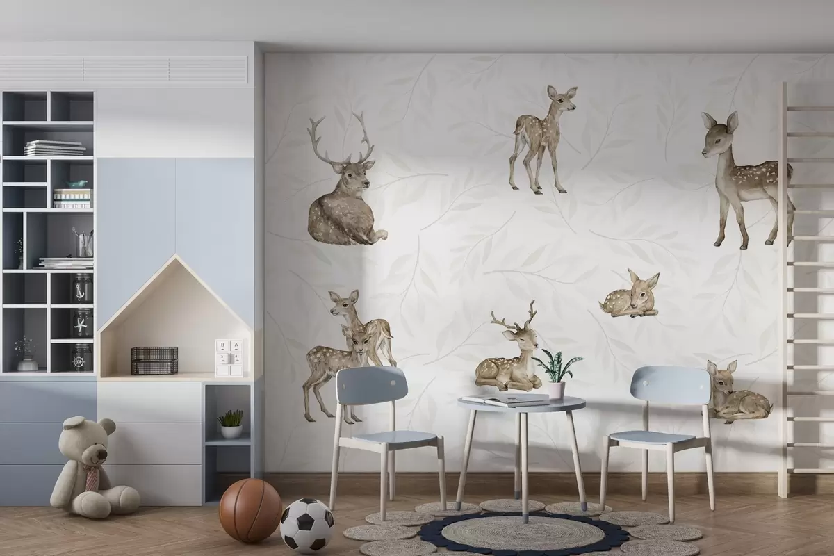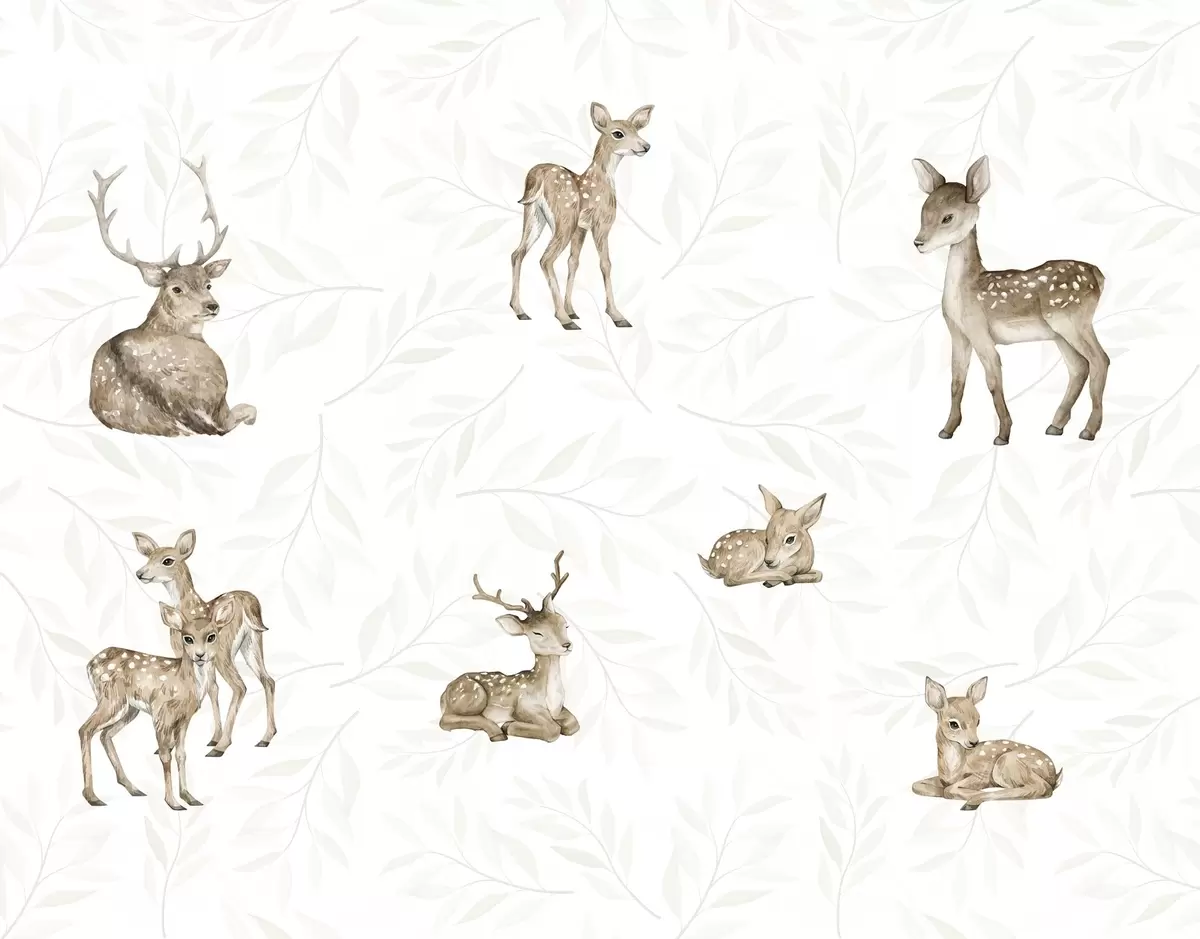 Murais de parede Fofos cervos em um fundo claro com galhos Nr. w04461