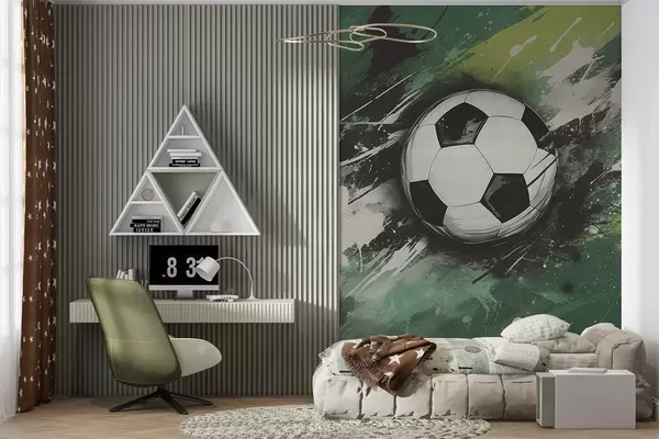 Murais de parede Bola de futebol com grafite embaçado ao fundo Nr. w04467