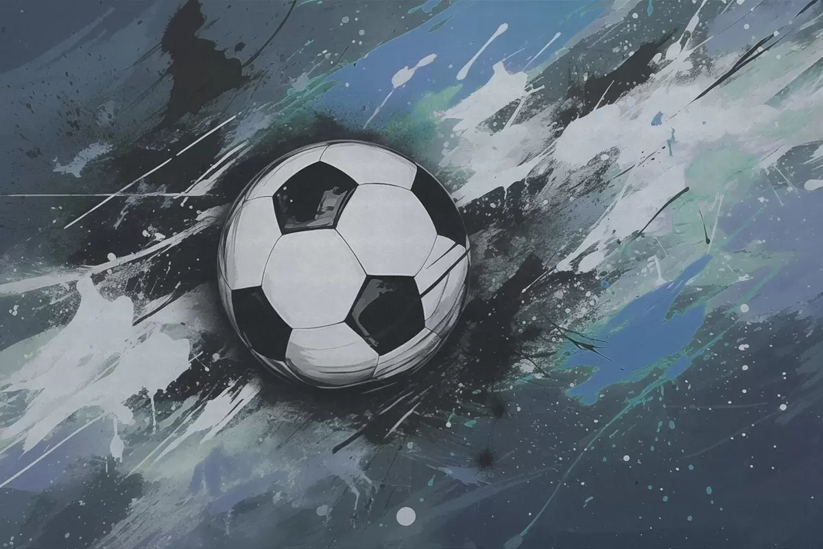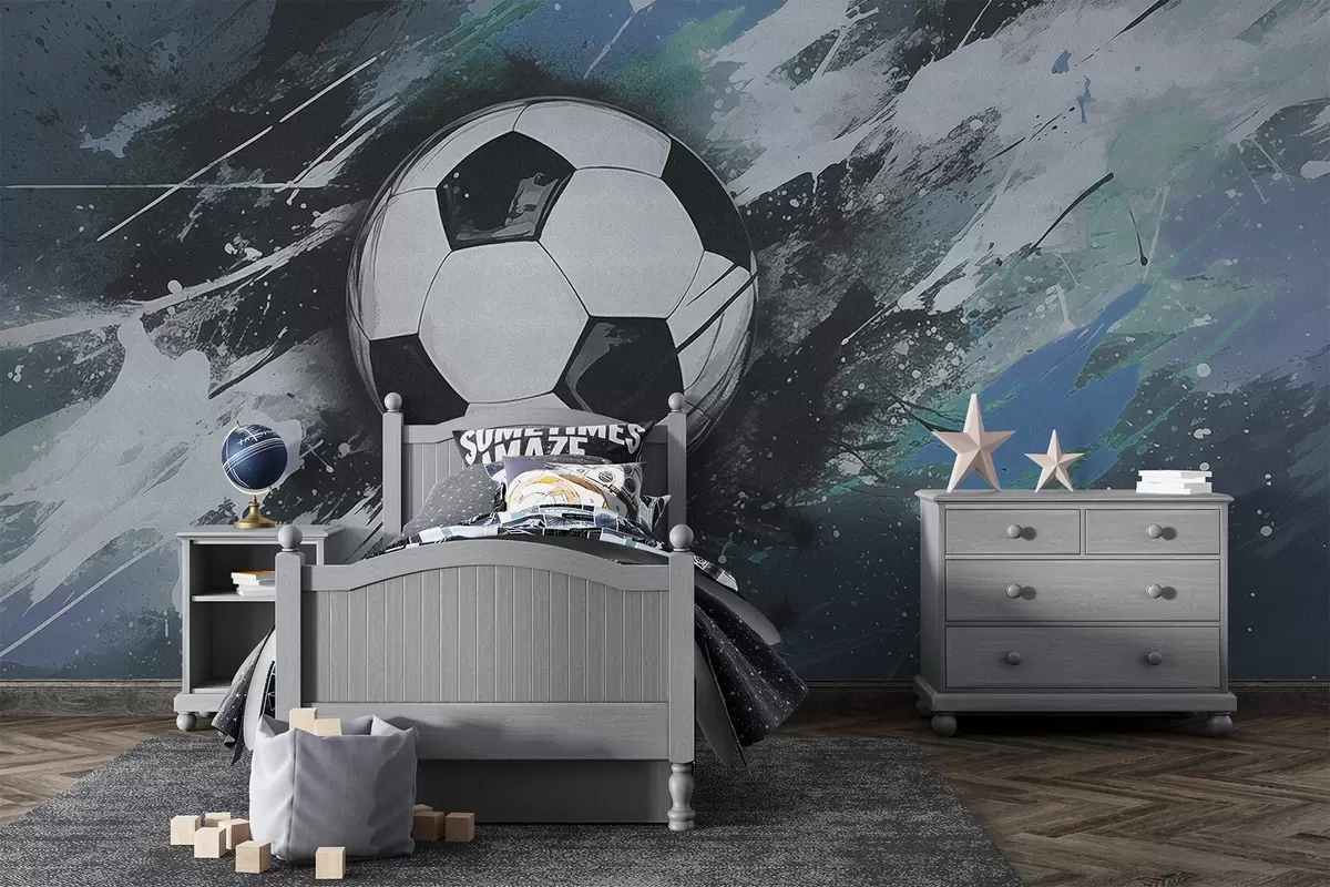 Murais de parede Bola de futebol com grafite embaçado ao fundo Nr. w04467v1