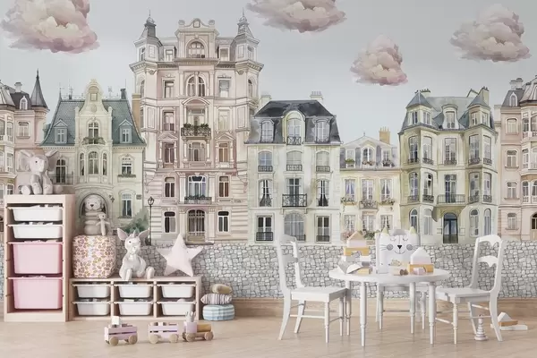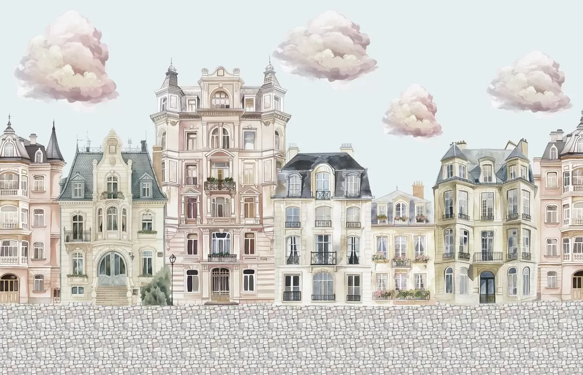 Murais de parede Casas coloridas, nuvens Nr. w04474v1