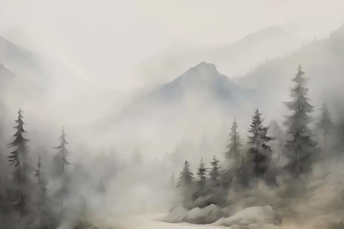 Murais de parede Floresta na neblina com as montanhas ao fundo Nr. w04493