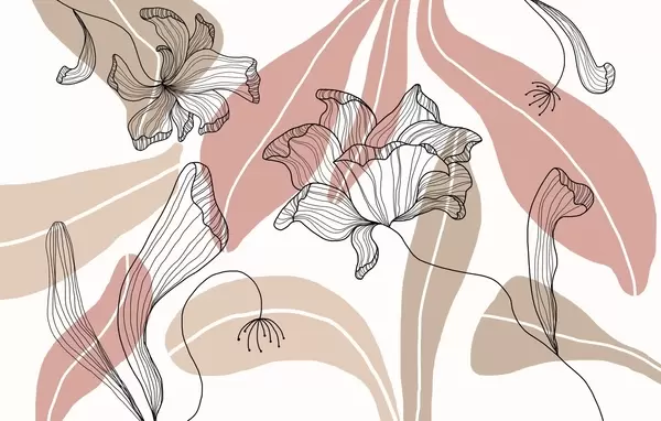 Murais de parede folhas e flores abstratas em tons de bege e pó Nr. w04499