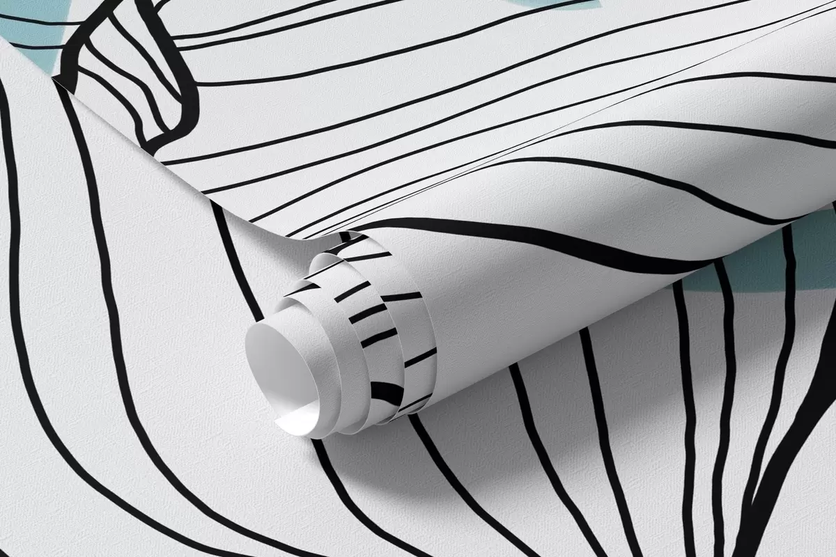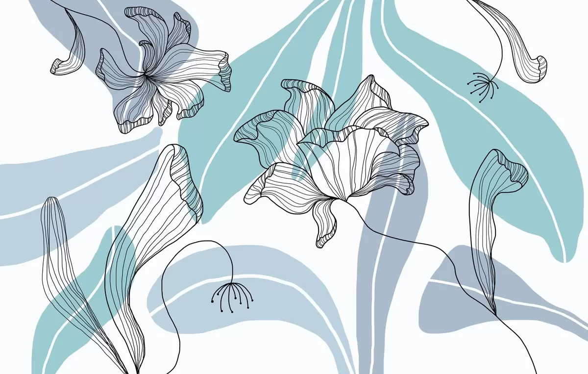Murais de parede folhas e flores abstratas em tons de azul Nr. w04499v2