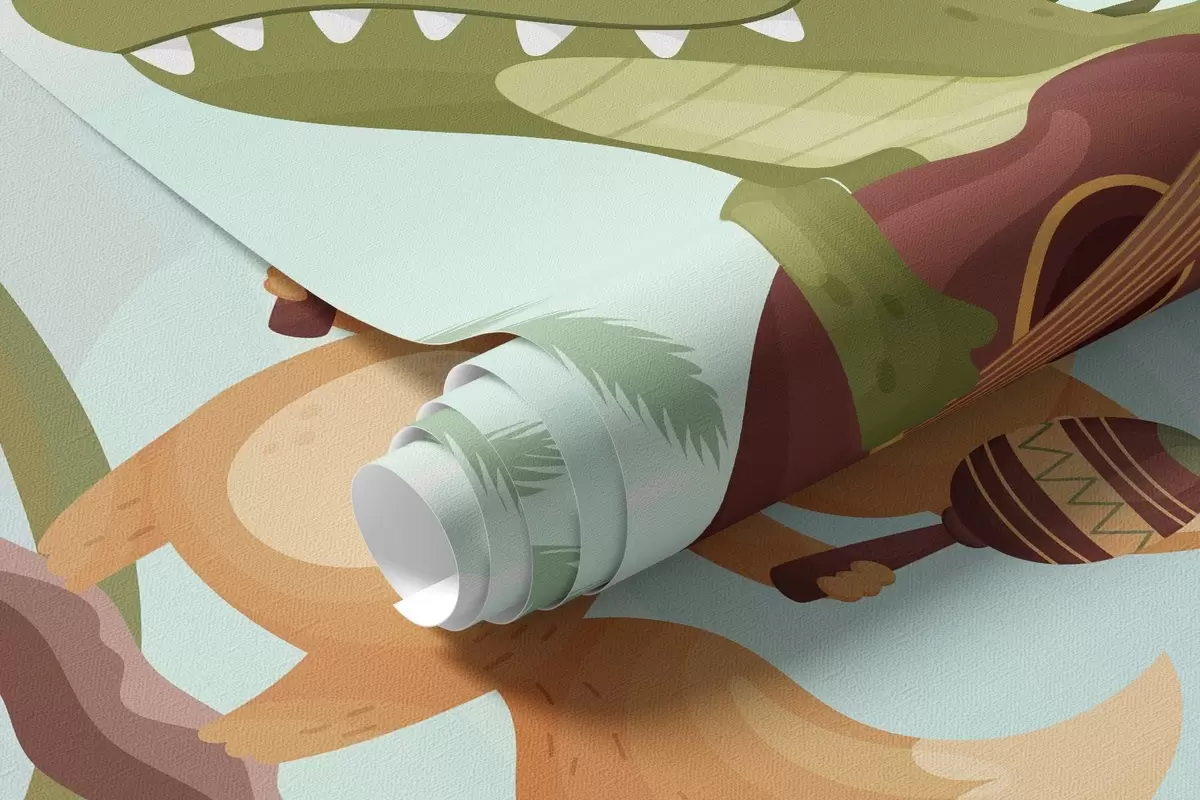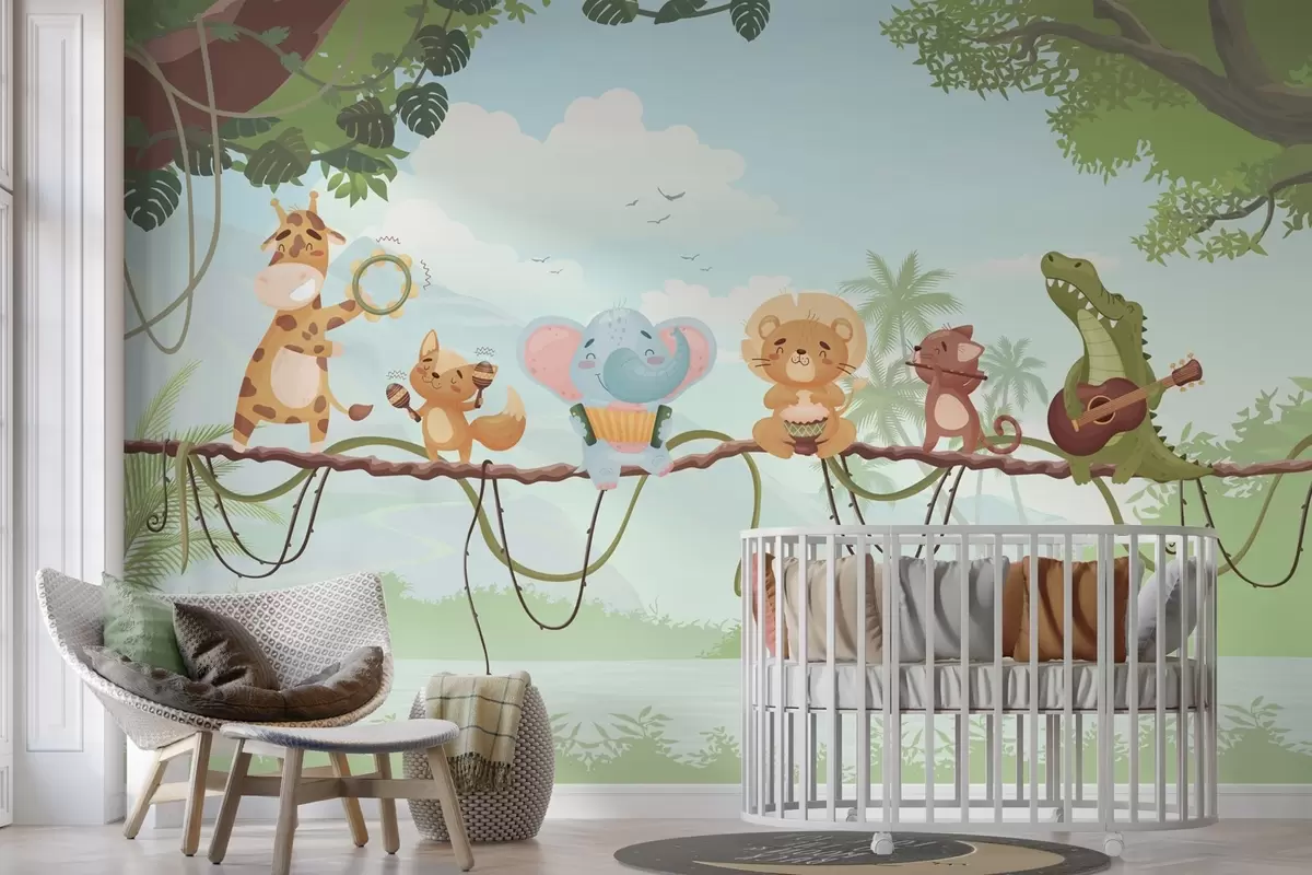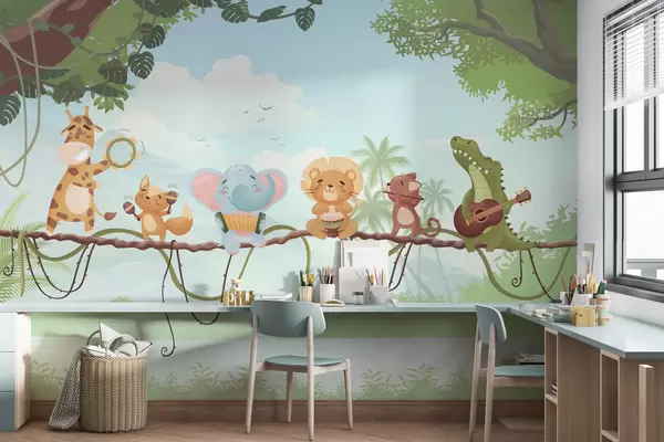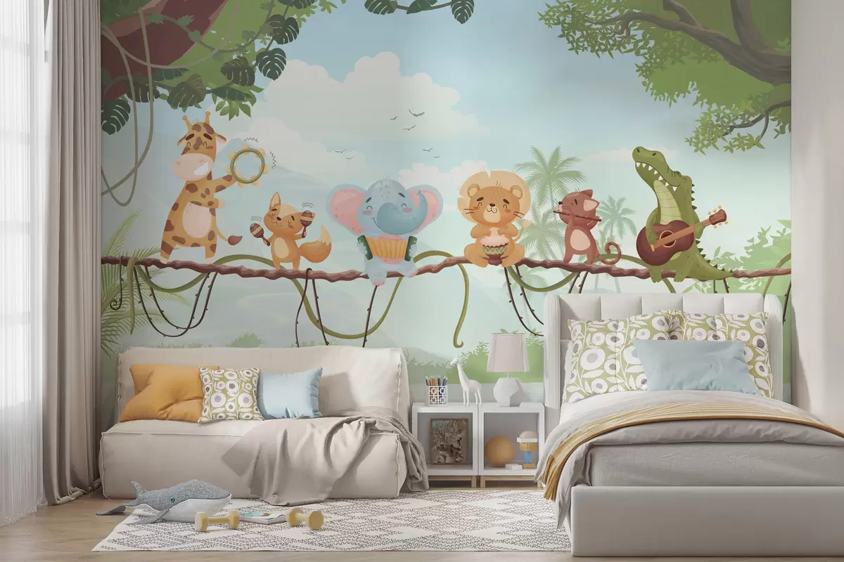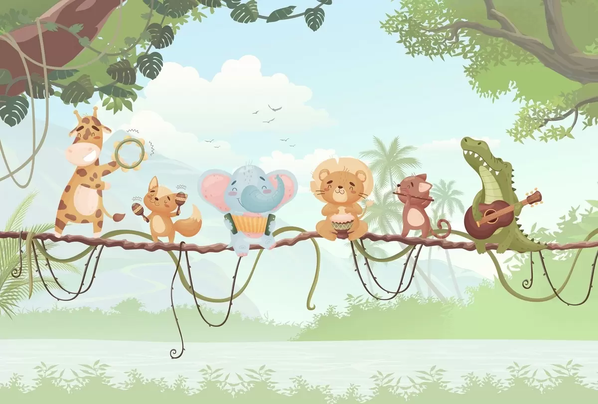 Murais de parede Animais com instrumentos musicais em um cenário tropical Nr. w04505