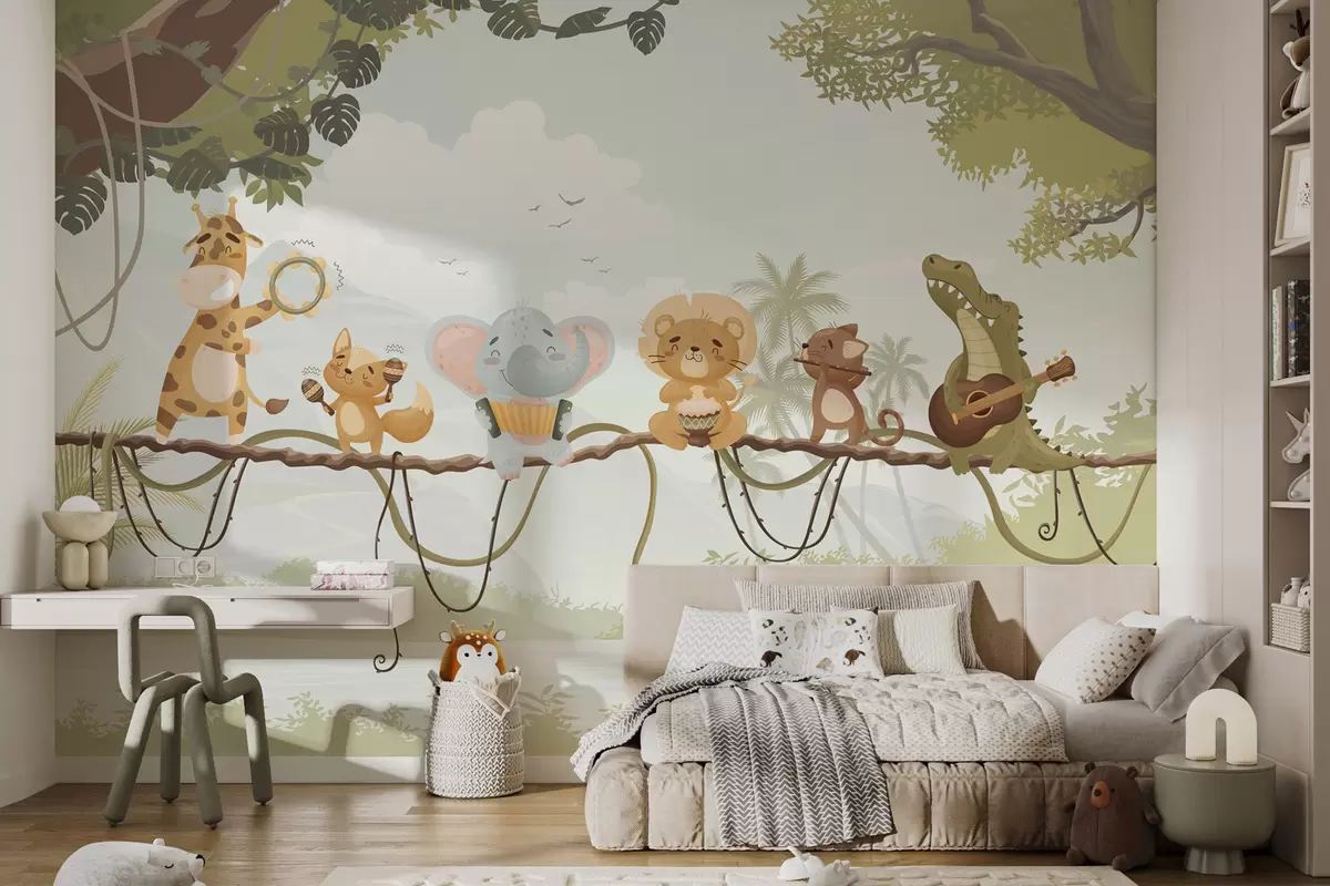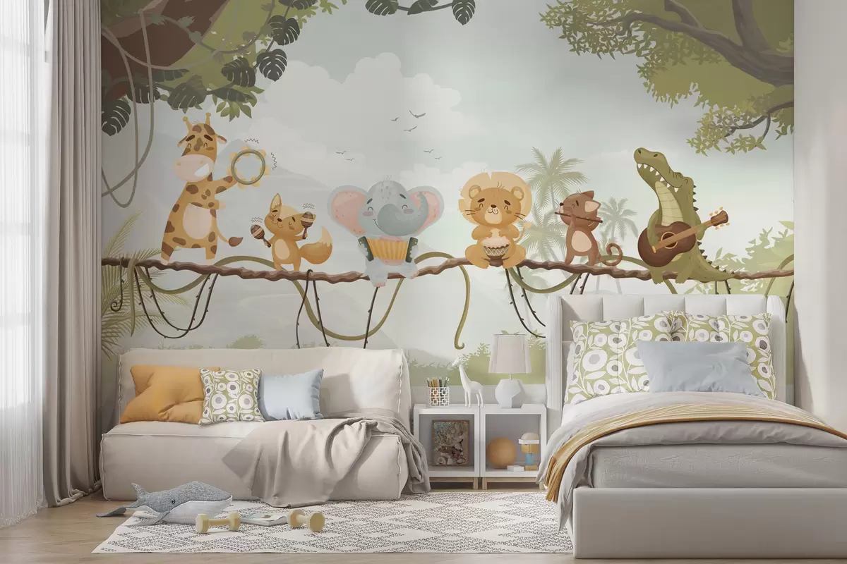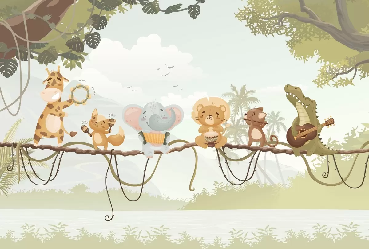 Murais de parede Animais com instrumentos musicais em um cenário tropical Nr. w04505v1